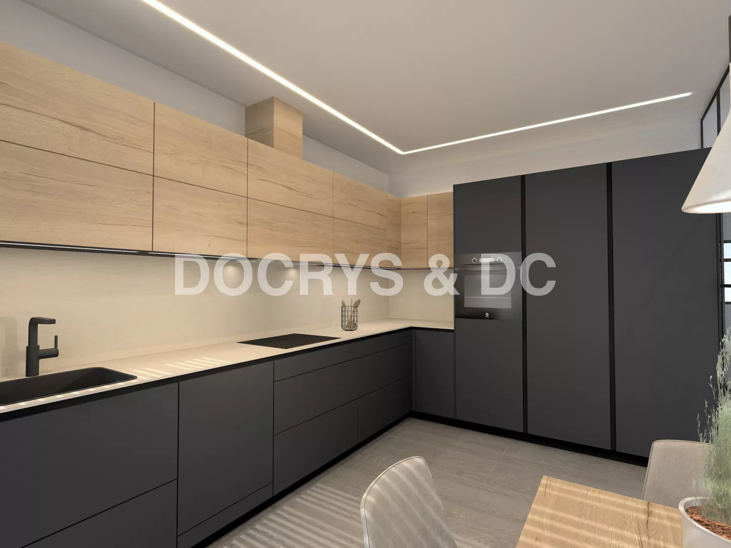 En cuanto a los suelos, hay diferentes opciones, por un lado, baldosas negras en negro mate o brillante pueden ser una excelente opción para el suelo, creando un look coherente y elegante. Y por otro lado la madera oscura, estos suelos aportan calidez y contrastan suavemente con los gabinetes negros.