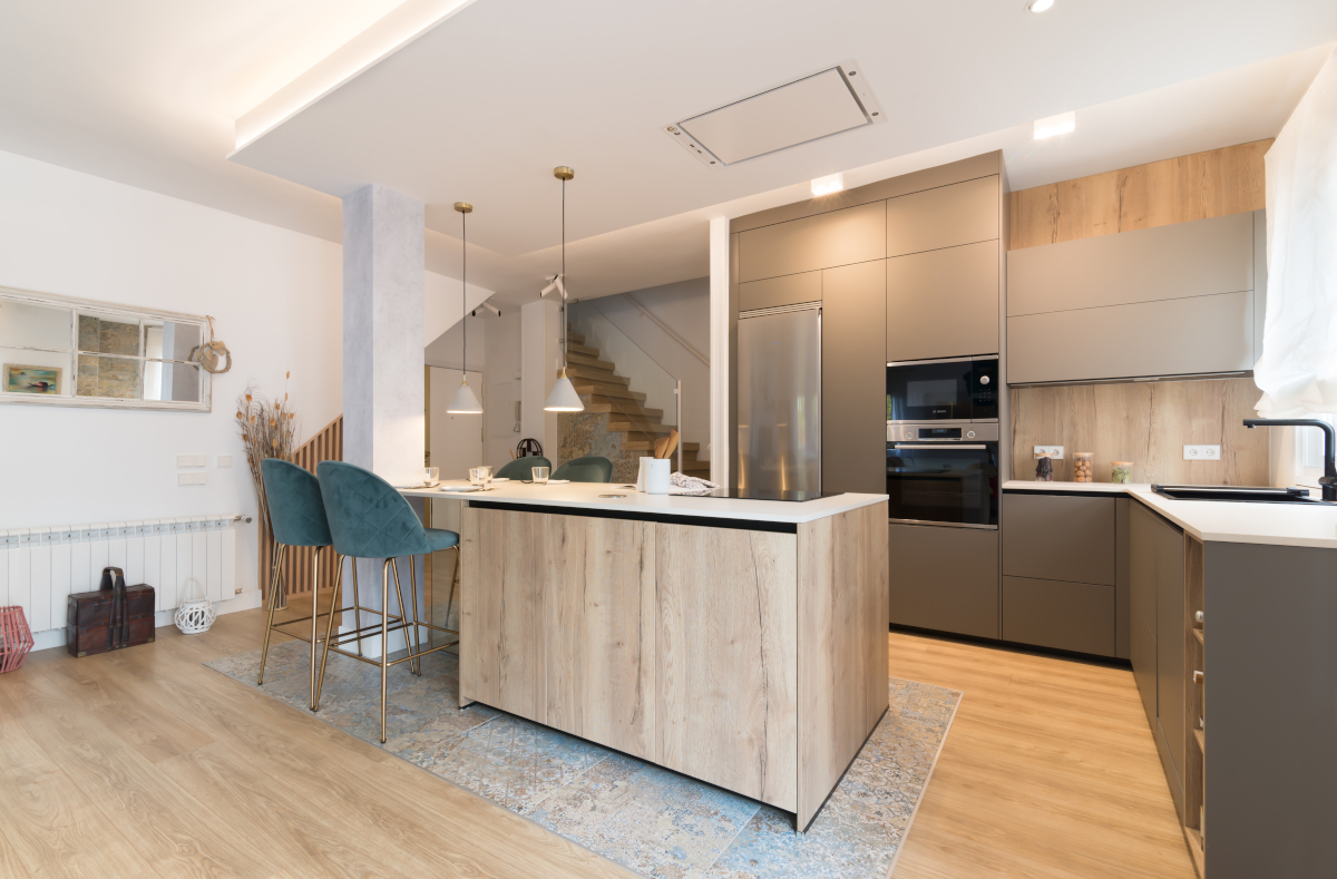 Las cocinas semiabiertas ofrecen el equilibrio perfecto entre conexión y privacidad. Al estar vinculadas al salón, fomentan la comunicación y la interacción social, pero permiten mantener una cierta intimidad en caso de preferirlo.