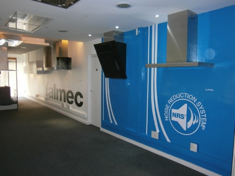 El nuevo showroom de Falmec en Barcelona, ubicado en el Eixample, cerca de una de las zonas comerciales más importantes de la ciudad, cuenta, como detalle, con un espacio de vidrio estanco en el que poder realizar demostraciones de la eficacia y potencia de aspiración de sus campanas.