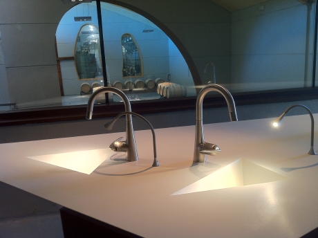 El estudio Mauro Cano Arquitectos es el responsable del diseño de la espectacular bodega El Rosalejo, en la provincia de Toledo. El proyecto, ejecutado con los materiales de mayor calidad del momento, cuenta con una mesa de catas realizada en tecno-superficie DuPont Corian: una especie de pirámide inversa con tres senos creados a partir de los lavabos, también de forma triangular. En la mesa se han ensamblado grifos a presión, para aclarar las copas, y unas lámparas que otorgan el máximo valor a los matices y tonalidades del caldo. Según Mauro Cano, hasta este momento, había trabajado poco con DuPont Corian porque prefería siempre materiales tradicionales, aunque fuera para aplicaciones más modernas. Siembargo, esta mesa de catas debía integrarse en el interior de un bodegón, y en DuPont Corian encontró la garantía del tono de blanco apropiado para la escasa luminosidad del entorno y un material que cumplía con las especificaciones del enólogo y la bodega. En las catas es muy importante la forma en que se refleja la luz para apreciar las tonalidades del vino. DuPont Corian nos concedió el tono de blanco adecuado para unirlo a la iluminación. Si la mesa se hubiera hecho con mármol blanco no podríamos garantizar el color apropiado, por lo que nos hubiéramos visto obligados a añadir elementos extraños, explicó el arquitecto Otro aspecto por el que Cano se decantó por DuPont Corian fue su facilidad de limpieza y mantenimiento, pues, en caso de que las manchas de vino fueran persistentes, siempre se puede lijar y pulir para que la superficie vuelva a tomar su color original. Dimos muchas vueltas buscando un material convincente y que cumpliera con todos los requisitos, hasta que llegó DuPont Corian. Influyeron muchos factores en su elección, pero también nos sedujo que fuera un material muy maleable y fácil de taladrar, de modo que pudiéramos instalar los grifos y otros componentes, así como modificarlo en un futuro si fuera necesario, añade Cano. La mesa se adapta a la geometría del espacio de catas donde se recoge la tensión provocada por los giros de los muros que componen el edificio. Realizada en DuPont Corian (en color Glacier White), la mesa ofrece un diseño vanguardista que recuerda además la forma de un racimo de uvas. * Para más información: www.corian.es