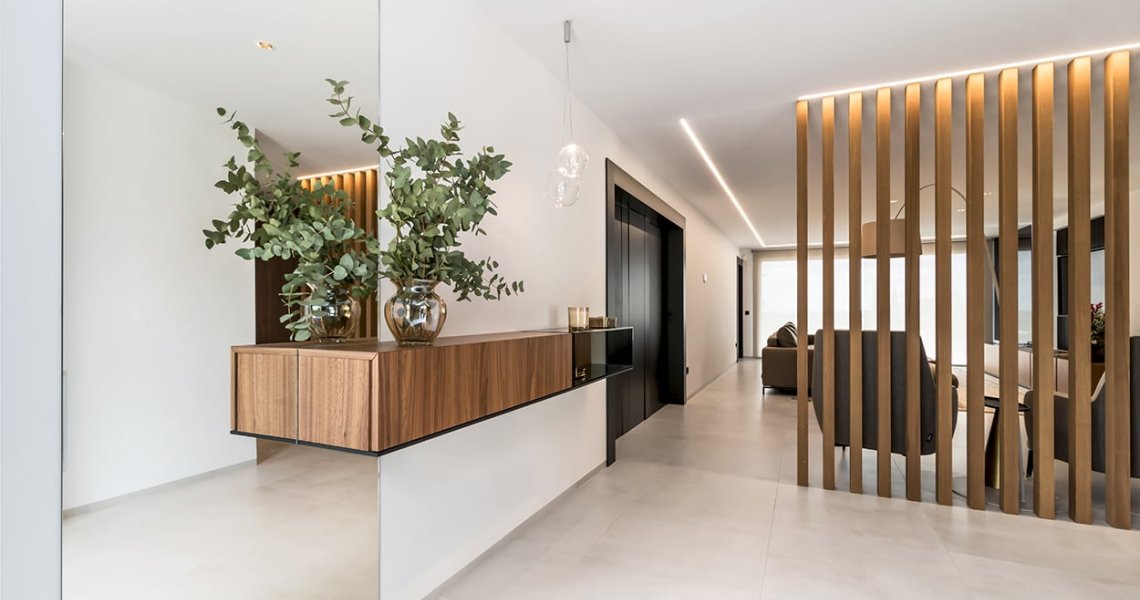 - En pasillos, la palillería puede servir como un elegante zócalo, aportando un toque de estilo y sofisticación a una zona que a menudo se pasa por alto en la decoración.