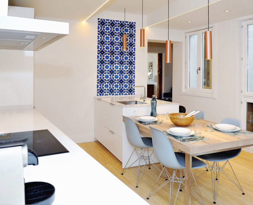 - Detalles infalibles. Romper acertadamente con el blanco no siempre es fácil cuando se busca una cocina moderna y actual, y el camino hacia ello puede conducir a muchas confusiones y a un alto nivel de frustración. Acabar con los estereotipos de “cocina blanca y aburrida” puede ser la clave para perder el miedo y actuar con total libertad y creatividad. Añade plantas naturales al espacio o un jardín vertical; una encimera de madera o de mármol; un suelo vinílico o cerámico con diseño de mosaico; salpicaderos y azulejos tipo metro; revestimientos de piedra decorativa en el frente de la zona de cocinado y/o en la encimera; vigas de madera en el techo si se busca un estilo más rústico…Piensa en tu estilo y apuesta por detalles infalibles que den a tu cocina blanca belleza y personalidad.