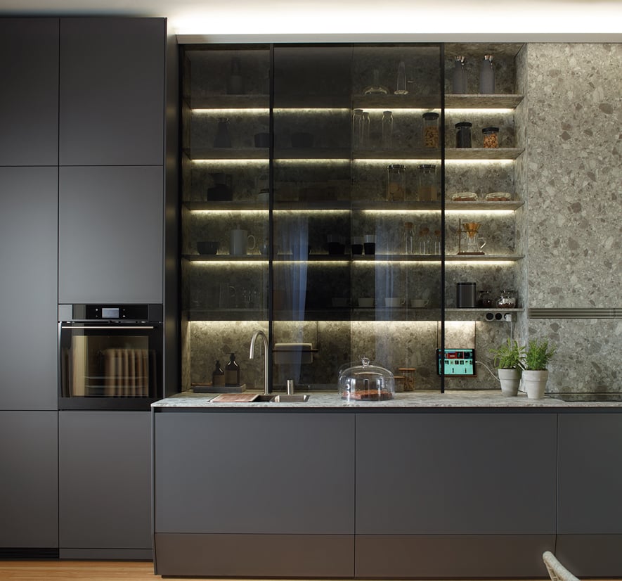 Estos muebles no solo cumplen una función de almacenamiento, sino que también permiten exhibir su contenido de manera elegante, convirtiéndose en un símbolo de lujo que añade un valor significativo a la cocina.