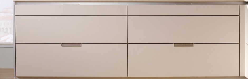 En la serie Minos podréis ver entremezclados belleza y funcionalidad: el tirador oculto mantiene la misma capacidad de almacenaje. Esto se consigue a través de incorporar una gola superior y un rebaje en el cajón intermedio. Una de las mayores ventajas de esta serie es que posee diferentes acabados, entre ellos el laminado, para que adaptes el resultado final de tu proyecto de cocina a tus gustos y necesidades.