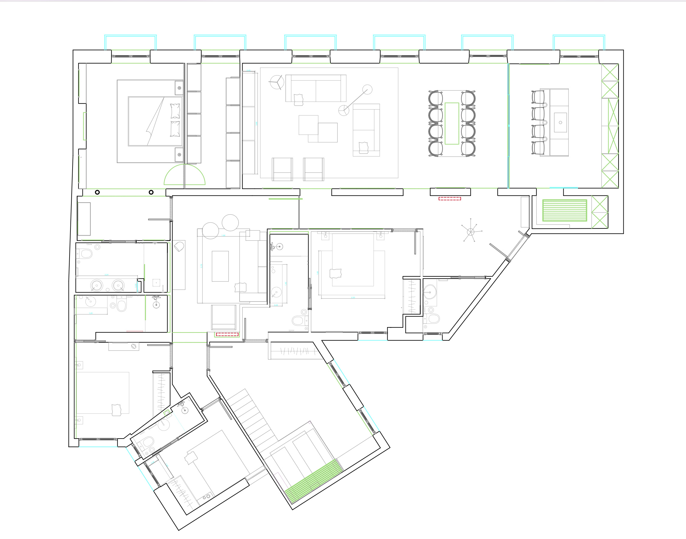 Ofrecemos una nueva distribución reflejada en un plano de planta, alzados en 2D y planos técnicos de instalaciones, asegurando una planificación integral del proyecto.
