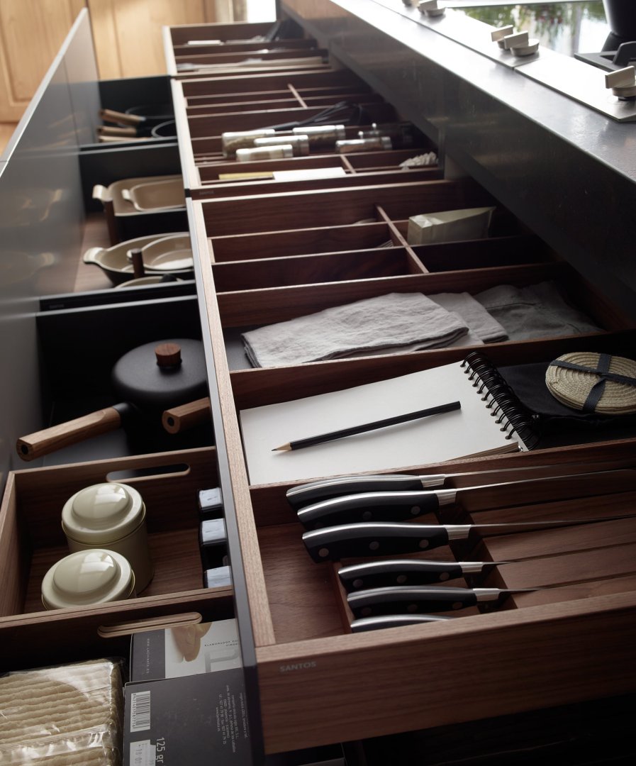Los muebles de cocina de lujo, no solo son exclusivos por su diseño exterior, sino también por su diseño interior, un espacio funcional con gran capacidad de almacenamiento y organización.