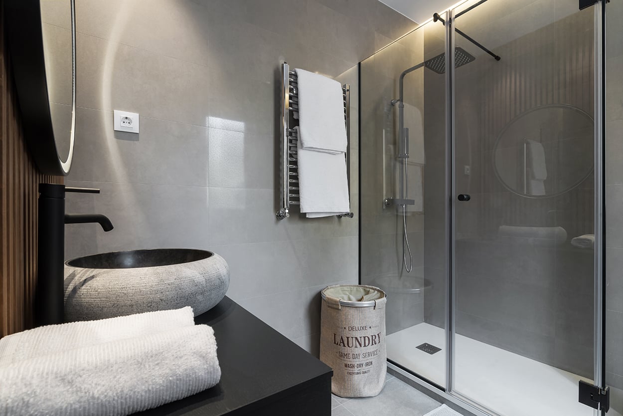 Optamos por colocar una ducha, favoreciendo su entrada sin complicaciones gracias a la continuidad del suelo.