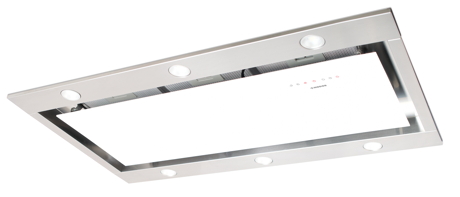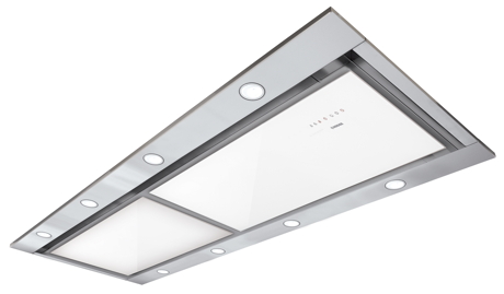- Aspiración perimetral de gran amplitud: Favorece la eliminación de los vapores, grasas y olores al forzar la ampliación de la zona de aspiración en el techo, puesto que al estar la campana más separada del plano de cocción los humos tienden a dispersarse más.