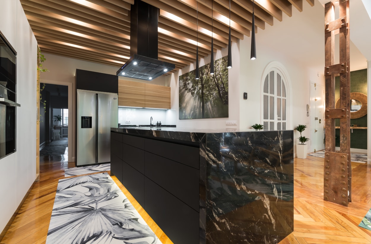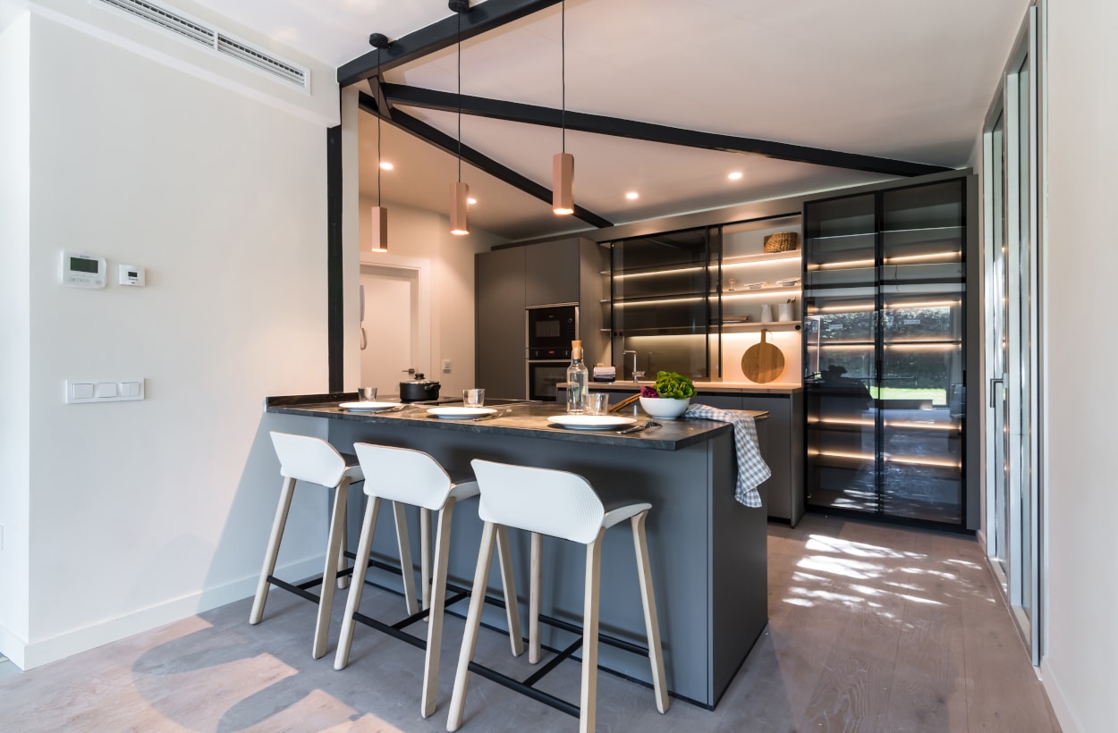 Las cocinas negras son las más estilosas y elegantes, y es que el color negro aporta el toque perfecto para un espacio abierto al resto de la casa, mimetizándose a la perfección con el resto de la vivienda.
