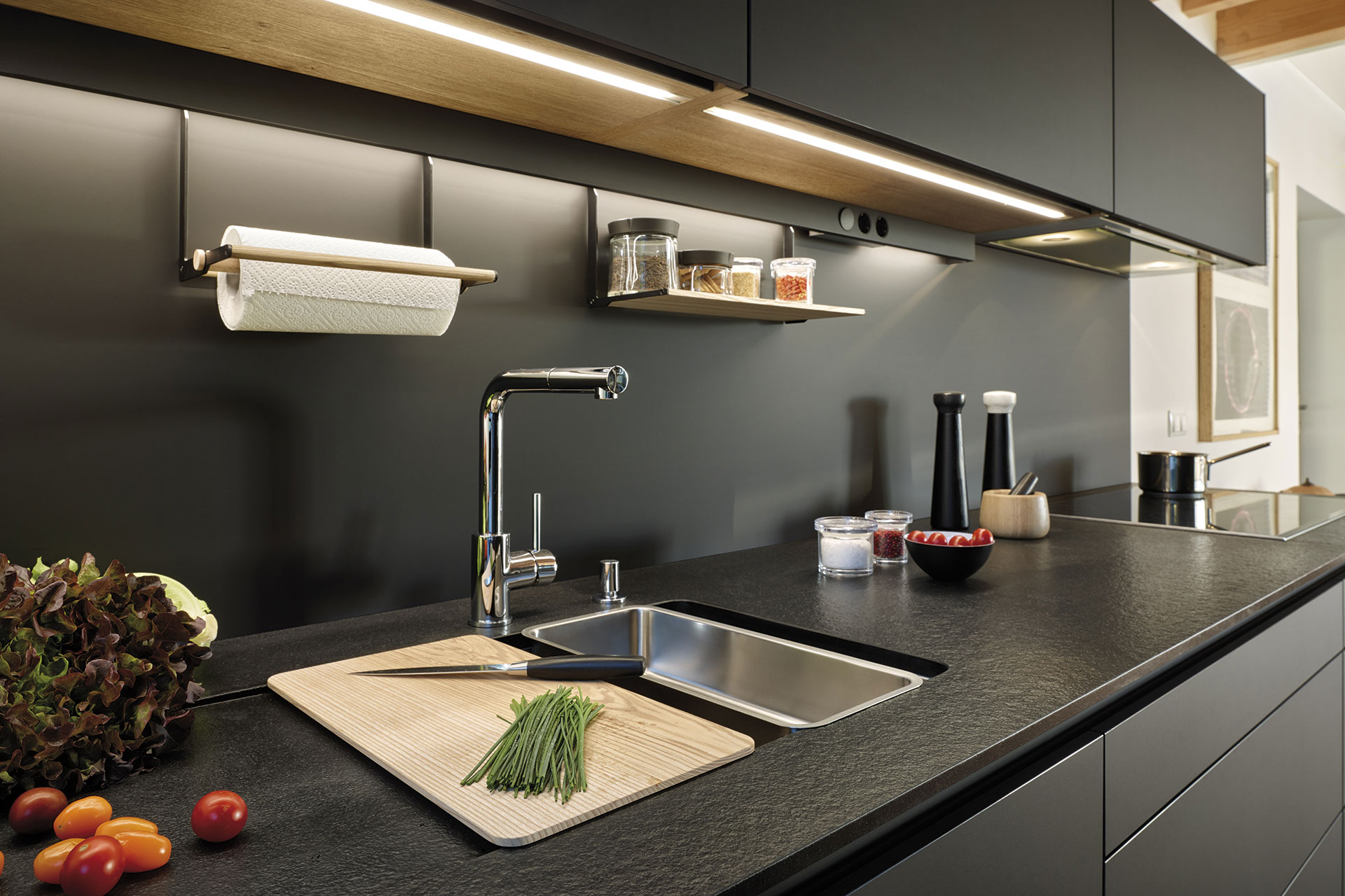 Los colores oscuros en general y el negro en particular suelen relacionarse a sensaciones de elegancia y sofisticación. Transmite limpieza y modernidad y con una buena combinación de colores con el resto de la estancia, puede resultar como un elemento visual primordial dentro de la vivienda. Muchas veces el color negro se asocia erróneamente con espacios cerrados o pequeños, de acceso no tan cotidiano, mientras que por su parte se asocian las tonalidades en claro para sensaciones de amplitud. Es por ello que quizás anteriormente el uso del negro siempre ha sido mayormente evitado para las cocinas, por temor a transmitir una sensación de agobio y encierro en un espacio claramente opuesto a ello.