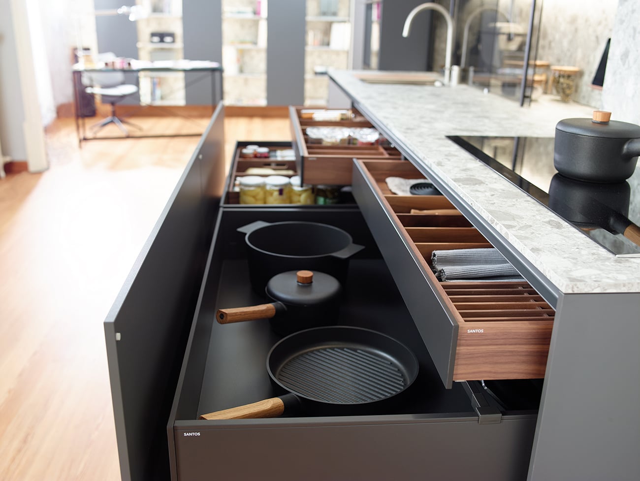 - Muebles de alta calidad: lo más importante para tener una cocina de lujo es la calidad de los muebles de tu cocina, por eso, es importante hacer una buena elección, en DOCRYS DC trabajamos en exclusiva con la marca SANTOS.