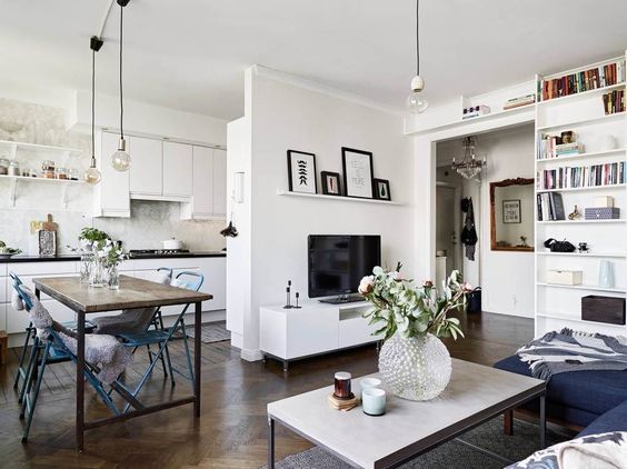 Paso 1: distribución del espacio El primer paso que debemos seguir para integrar ambos espacios consiste en distribuir adecuadamente los espacios. Independientemente del tamaño de tu cocina y salón, aprovechar al máximo el espacio es fundamental. Por un lado, necesitamos una cocina funcional y práctica, por otro, un espacio dirigido al descanso e interacción, pero consiguiendo que ambos espacios queden conectados. Para distribuir adecuadamente el espacio, una de las herramientas más utilizadas consiste en poner una isla en medio de la cocina, de esta manera conseguimos delimitar ambos espacios. Adicionalmente, debemos tener en cuenta la distribución de los muebles y electrodomésticos. La importancia de estos no se reduce a su utilidad, sino que también abarca una función decorativa. Deben combinar con el estilo del salón y la decoración utilizada.