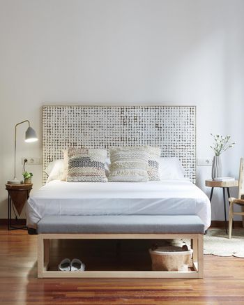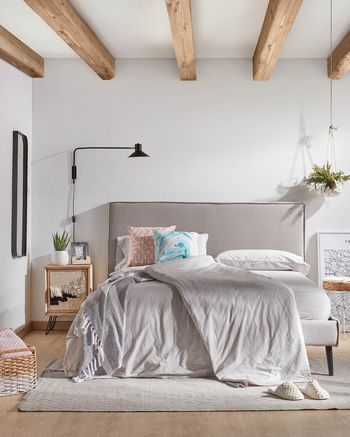 Nuestra recomendación es optar por un blanco nuclear, así podrás tener más juego a la hora de elegir los cojines o artículos de decoración sin llegar a sobrecargar la decoración del dormitorio.
