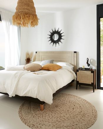 El dormitorio es un lugar para relajarse y desconectar, opta por colocar los muebles que vayas a necesitar… Con un par de mesillas de noche, un baúl a los pies de la cama y una cómoda, es suficiente.