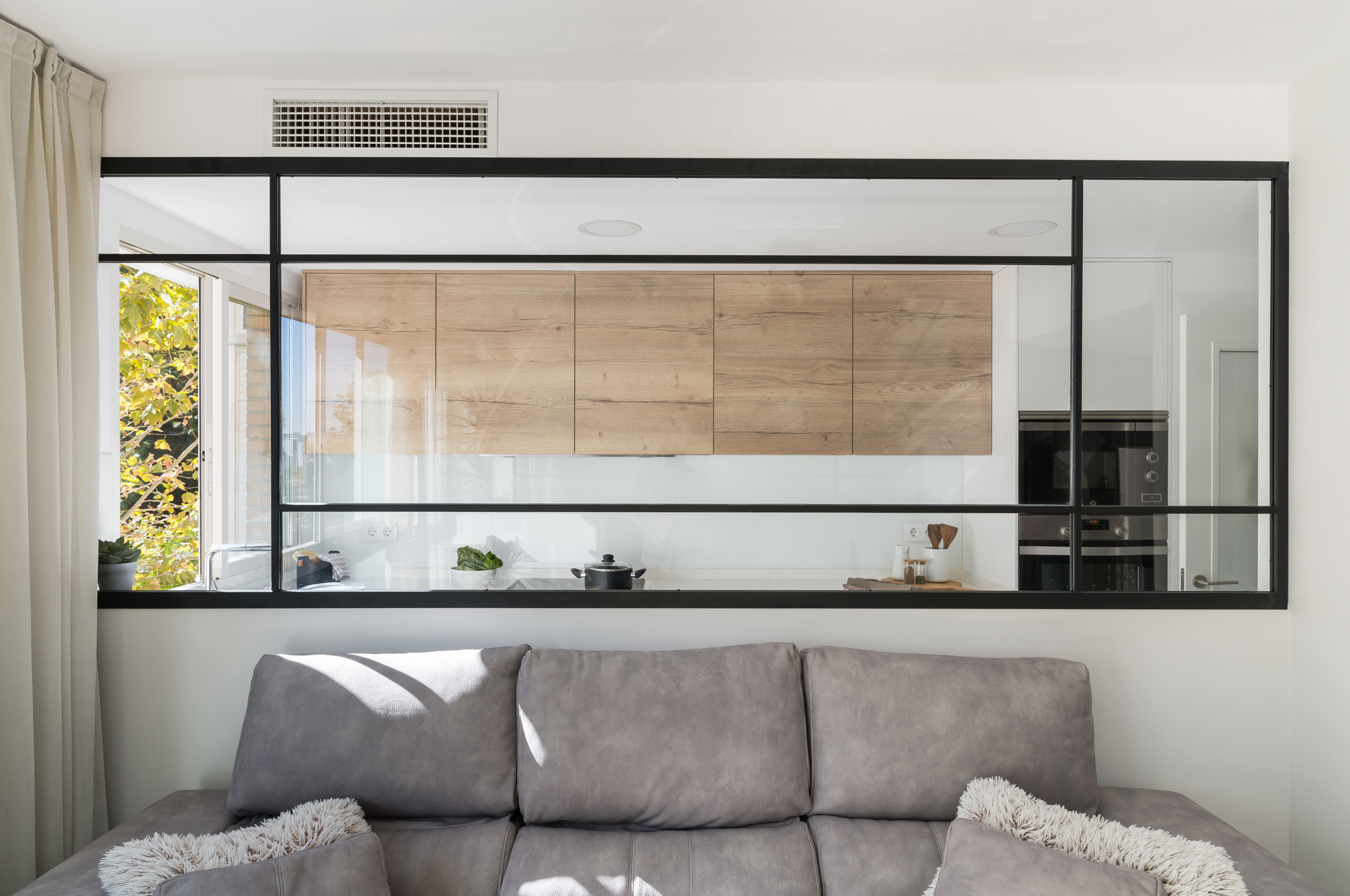 Esta es la mejor decisión que puedes tomar. ¡Una cocina abierta al salón! Multiplica los m2 y obtendrás un espacio mucho más cómodo y funcional. Si no te atreves a abrir tu cocina al salón, opta por un espacio semiabierto con puertas correderas, hará el mismo efecto, pero podrás abrir o cerrar según la circunstancia.