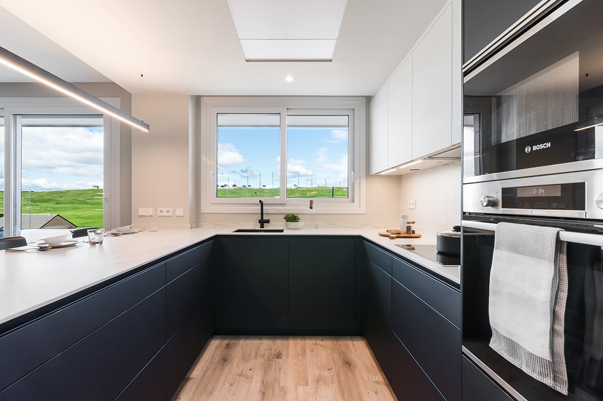 Las cocinas con distribución en U son de lo más prácticas y cumplen a rajatabla el teorema del triángulo de trabajo.