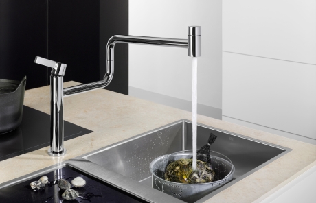 La grifería Pivot con radio de acción flexible de 360° y el monomando Elio con nueva ducha extraíble son las novedades con las que Dornbracht ha destacado en la pasada LivingKitchen.