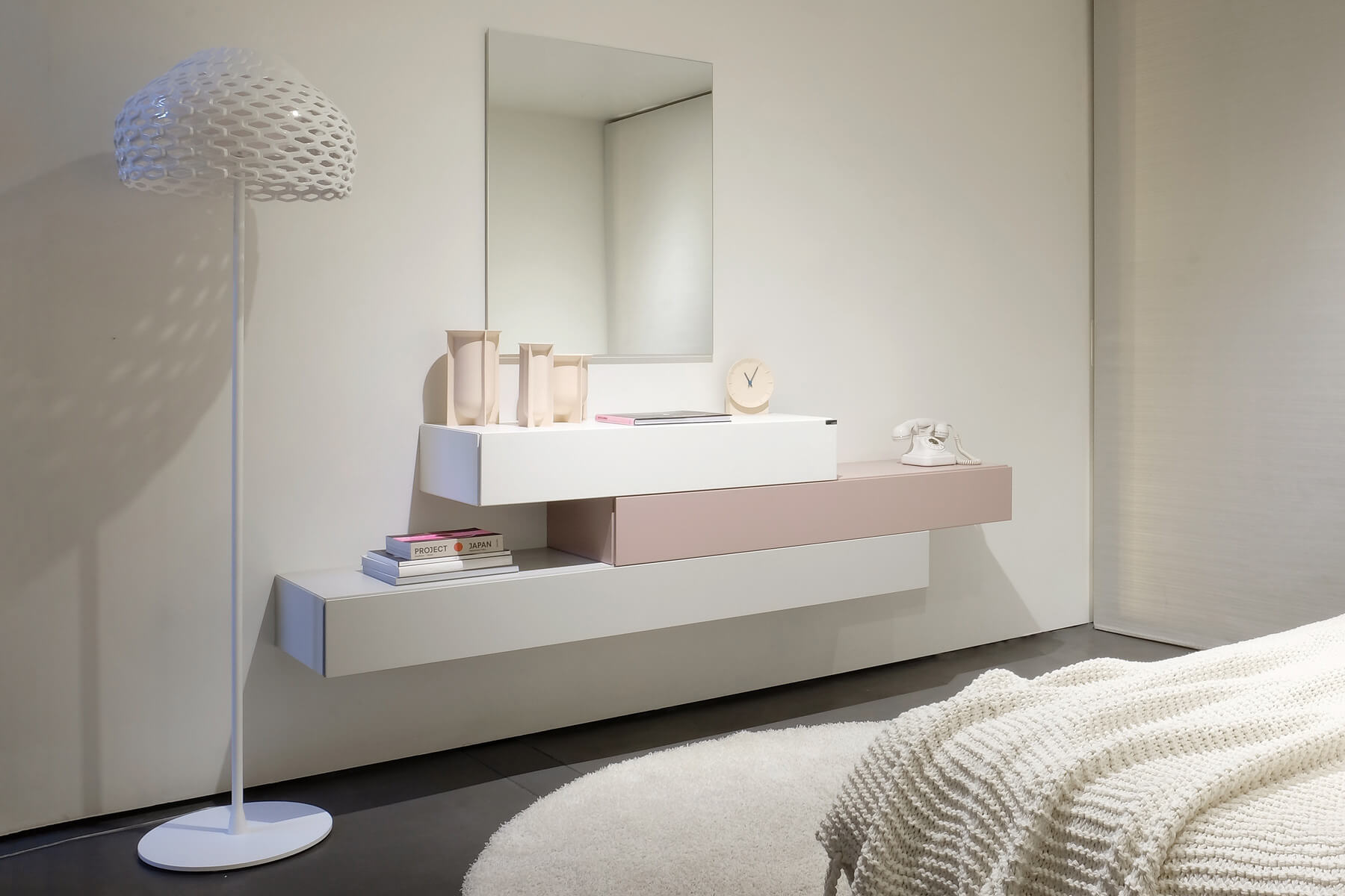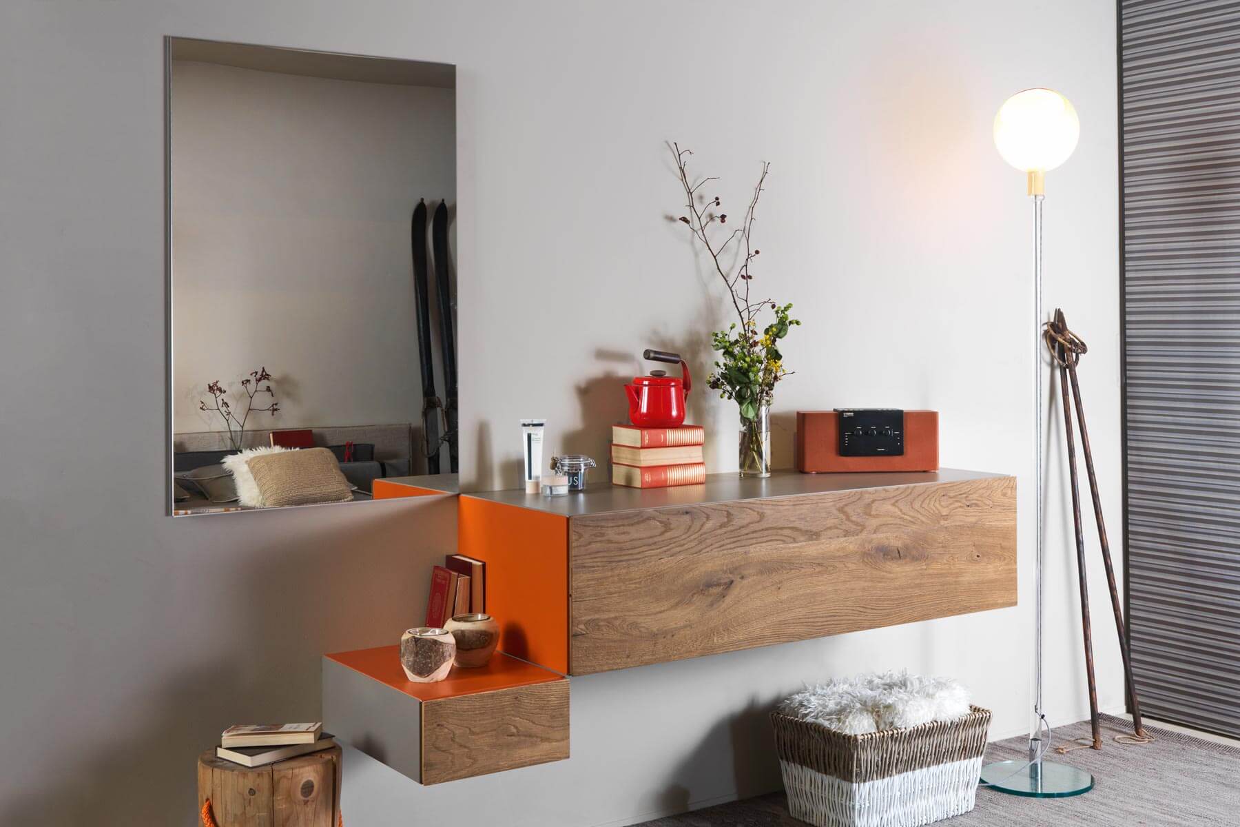 Cómoda y espejo de estilos minimalista