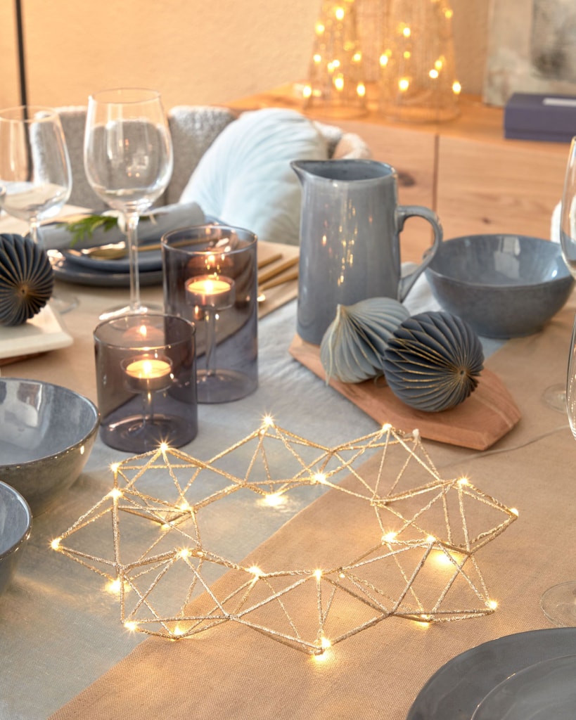 El azul es una muy buena opción para vestir la mesa estas navidades, un color en tendencia y fácil de combinar. Opta por añadir toques verdes y dorados.