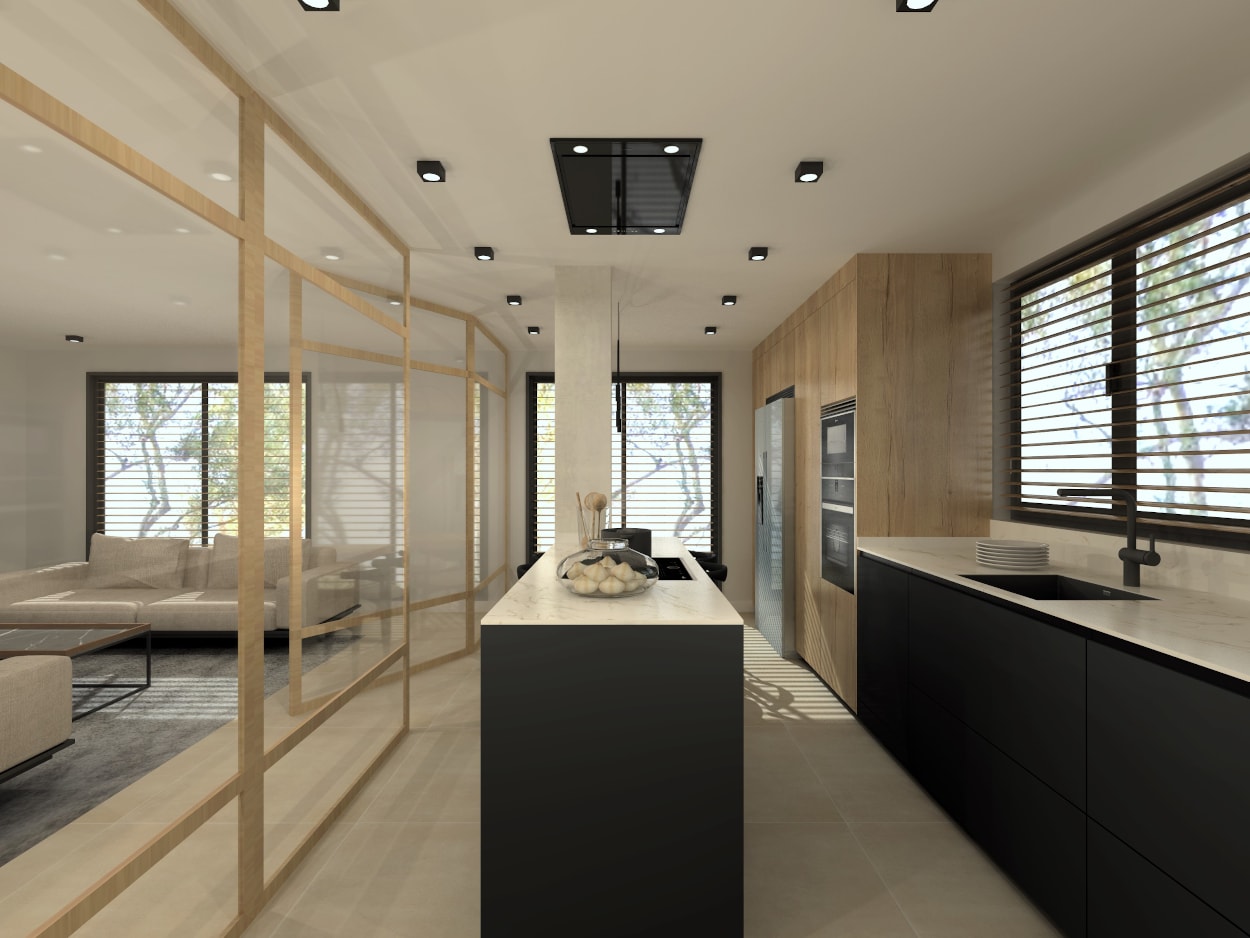 Lo que diferencia una cocina moderna son los electrodomésticos panelados, que estén integrados en el mobiliario, esto hará que el espacio sea mucho más lineal visualmente.