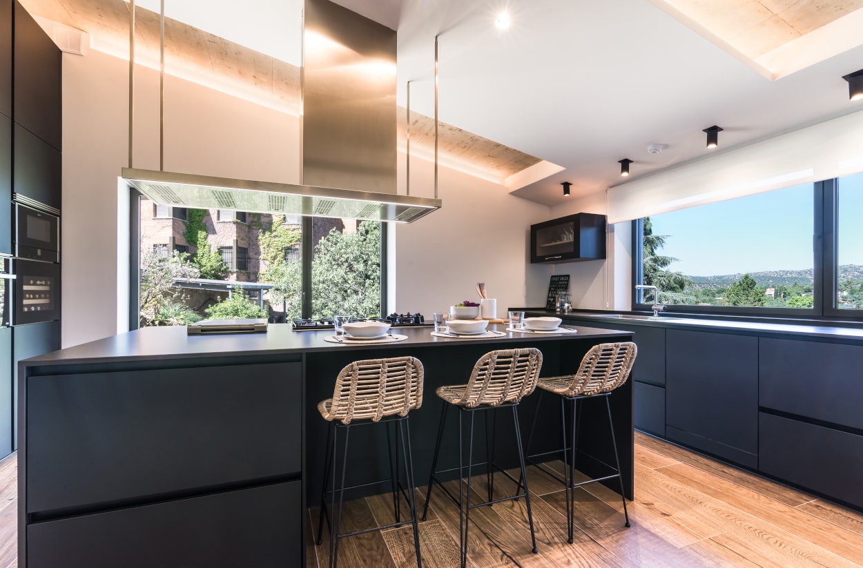 COCINA NEGRA SEMIABIERTA AL SALÓN