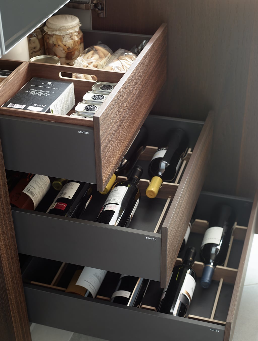 ¡Con todos los accesorios de almacenamiento de cocinas Santos ya no hay excusas para tener una cocina organizada!