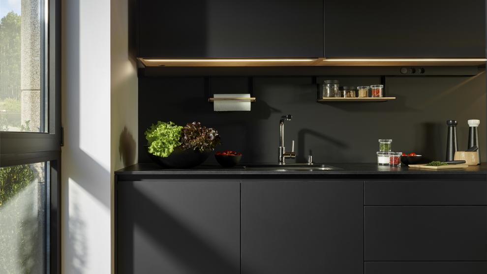 La puertas de cocina mate, la veremos con diferentes materiales: laminados, lacas e incluso puertas de cristal en colores mate, y todos con una superficie lisa y, lejos de las antiguas puertas mate, que eran porosas y donde se quedaba adherida la suciedad. Los avances técnico, como los de SANTOS han sido de gran ayuda para la reinvención de este tipo de acabado, los nuevos materiales con menos porosidad, favorecen la limpieza de la superficie, son respetuosas con el medio ambiente y carecen de rugosidad o pulidos que distorsionan el tacto cálido y suave o la perfecta apreciación de los matices de color.