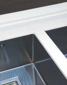 En laminado HPL, D'Aqua ha llegado a un acuerdo con el fabricante italiano Baido y ofrecen encimeras desde 12 mm hasta 100 mm de grosor, con distintas posibilidades de fregadero (bajo encimera, sobre encimera...). Son de material hidrófugo e ignifugo.