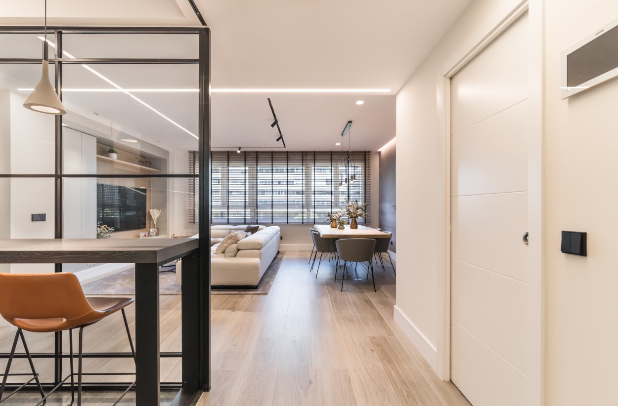 Desde Docrys & DC, proponemos puertas modernas correderas como separador de ambientes, perfectas para salones y cocinas, donde tienes la opción de abrirlas o cerrarlas según la ocasión, pero sin perder nunca el contacto visual y la luminosidad, conectando siempre ambas estancias.