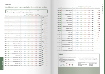 En dicha clasificación, que ha sido elaborada a partir de los últimos datos depositados por las propias compañías en el Registro Mercantil (la mayoría del ejercicio 2011) se muestra la evolución del importe íntegro de la cifra de negocio de las empresas desde el ejercicio 2007. Así, se trata de un documento muy interesante, ya que muestra la evolción de la mayoría de empresas del sector desde los mismos inicios de la crisis. fuente: http://www.cocinaintegral.net