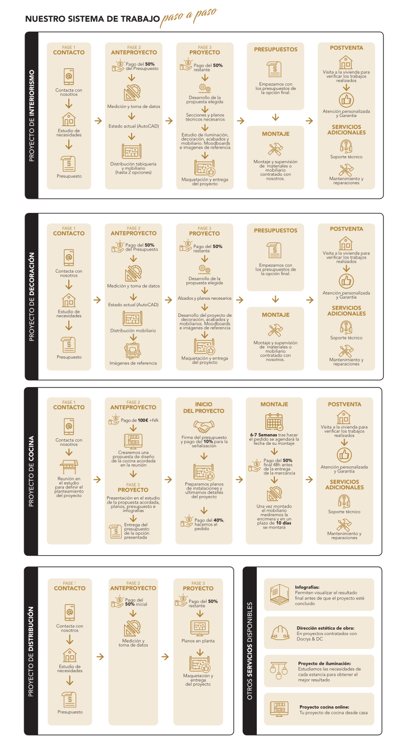 En Docrys & DC, creemos que cada proyecto merece una atención personalizada y un proceso estructurado que garantice resultados excelentes. Por eso, hemos diseñado un sistema de trabajo paso a paso, adaptado a cada tipo de proyecto: interiorismo, decoración, cocinas y distribución.