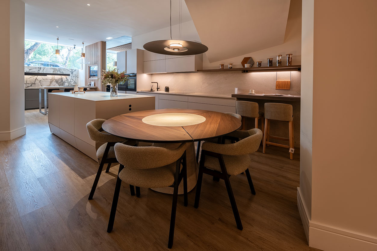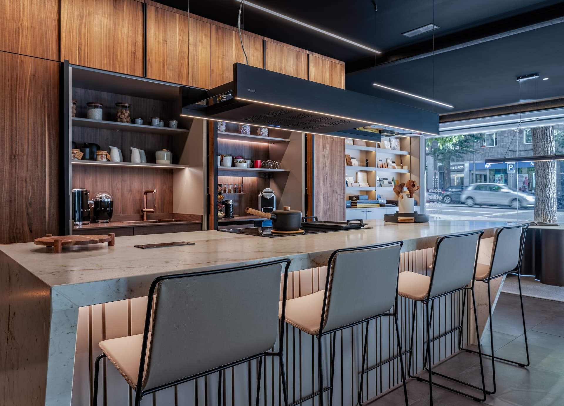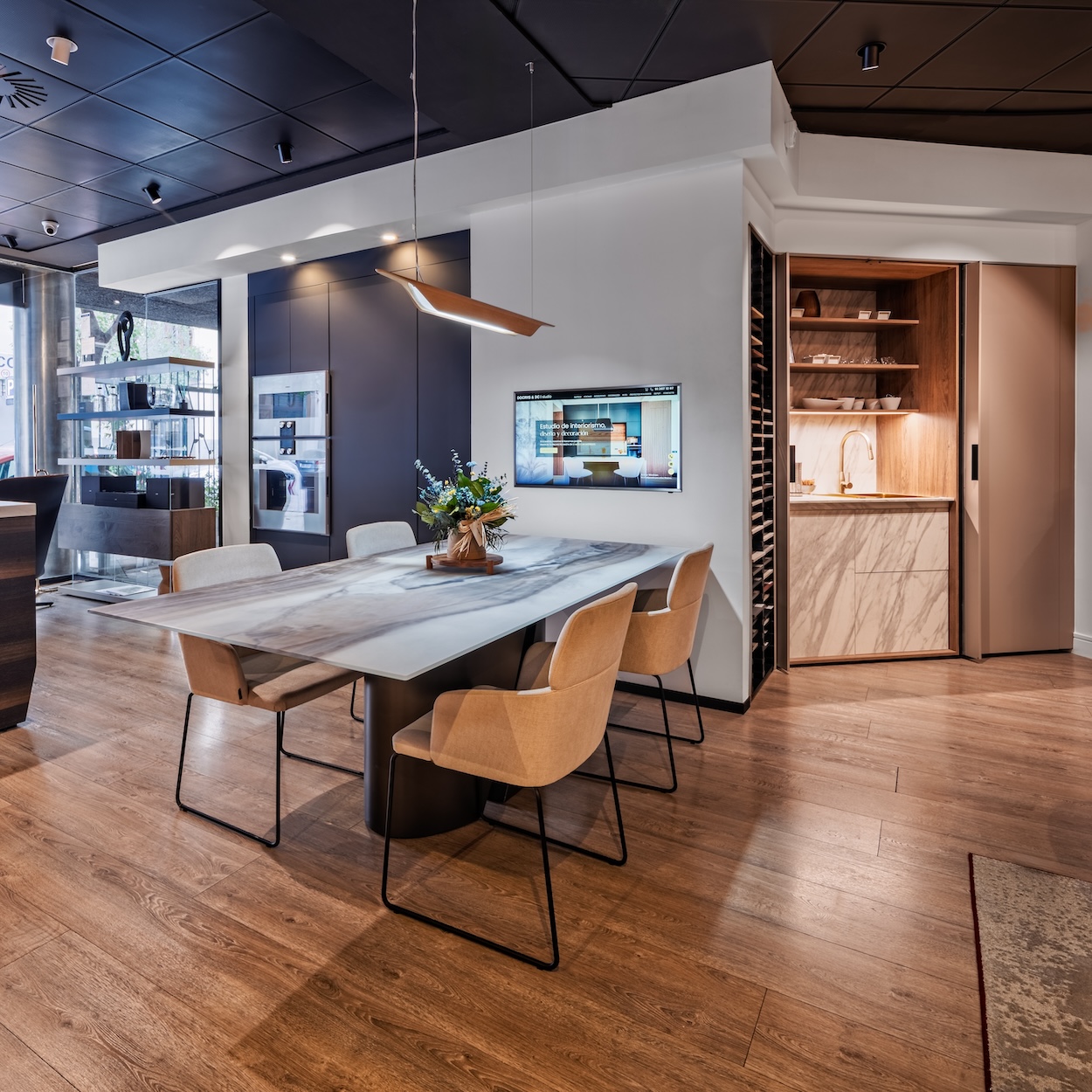 En nuestros showrooms podrás explorar distintas distribuciones, acabados premium, sistemas de almacenaje innovadores y asesoramiento experto sin compromiso. Queremos que puedas tocar, probar y comparar, para que la decisión de tu nueva cocina sea más sencilla y segura.