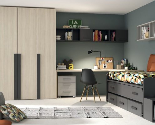 Otro de nuestros dormitorios de diseños favoritos, es este dormitorio con literas tan especial, el diseño de este dormitorio, lo realizamos para un proyecto integral en Madrid.