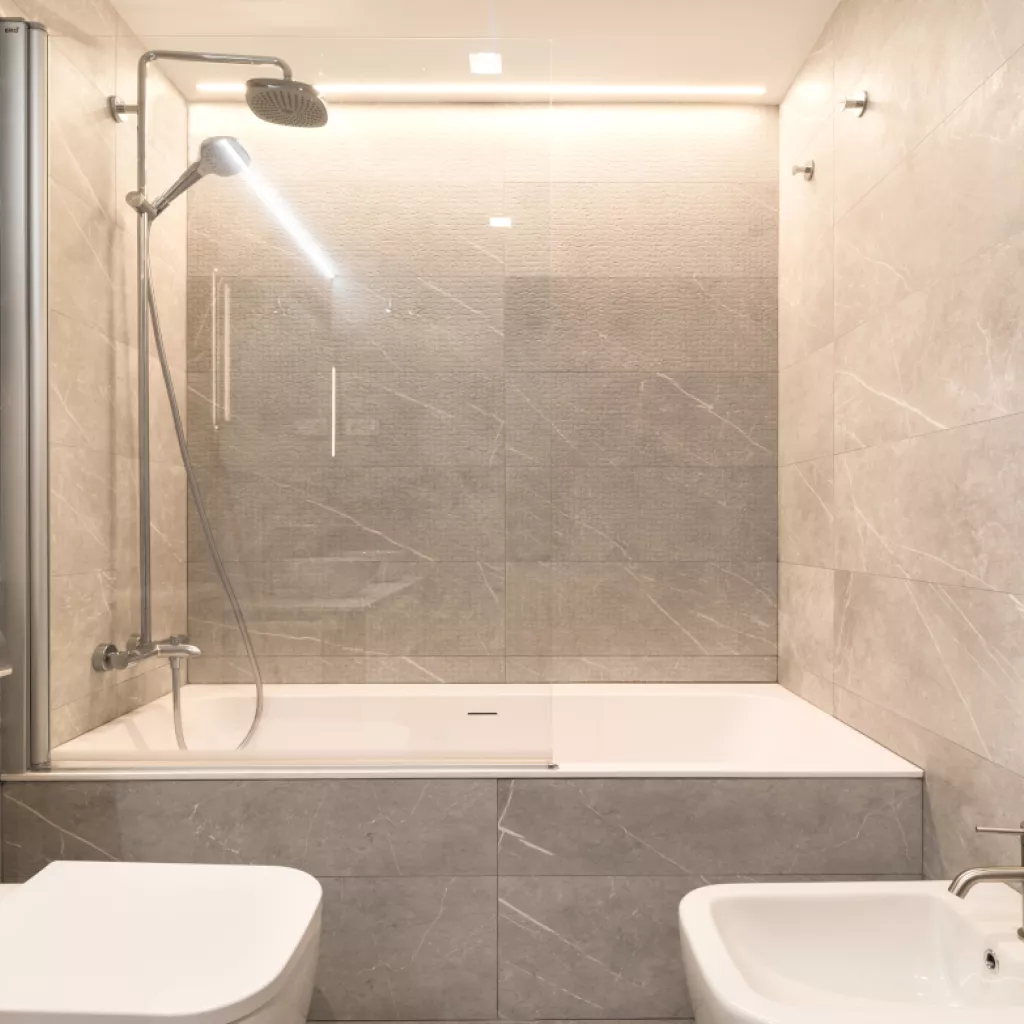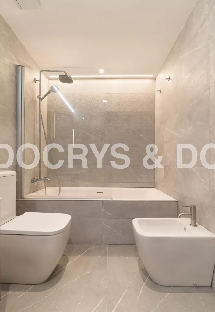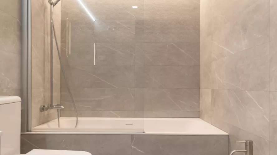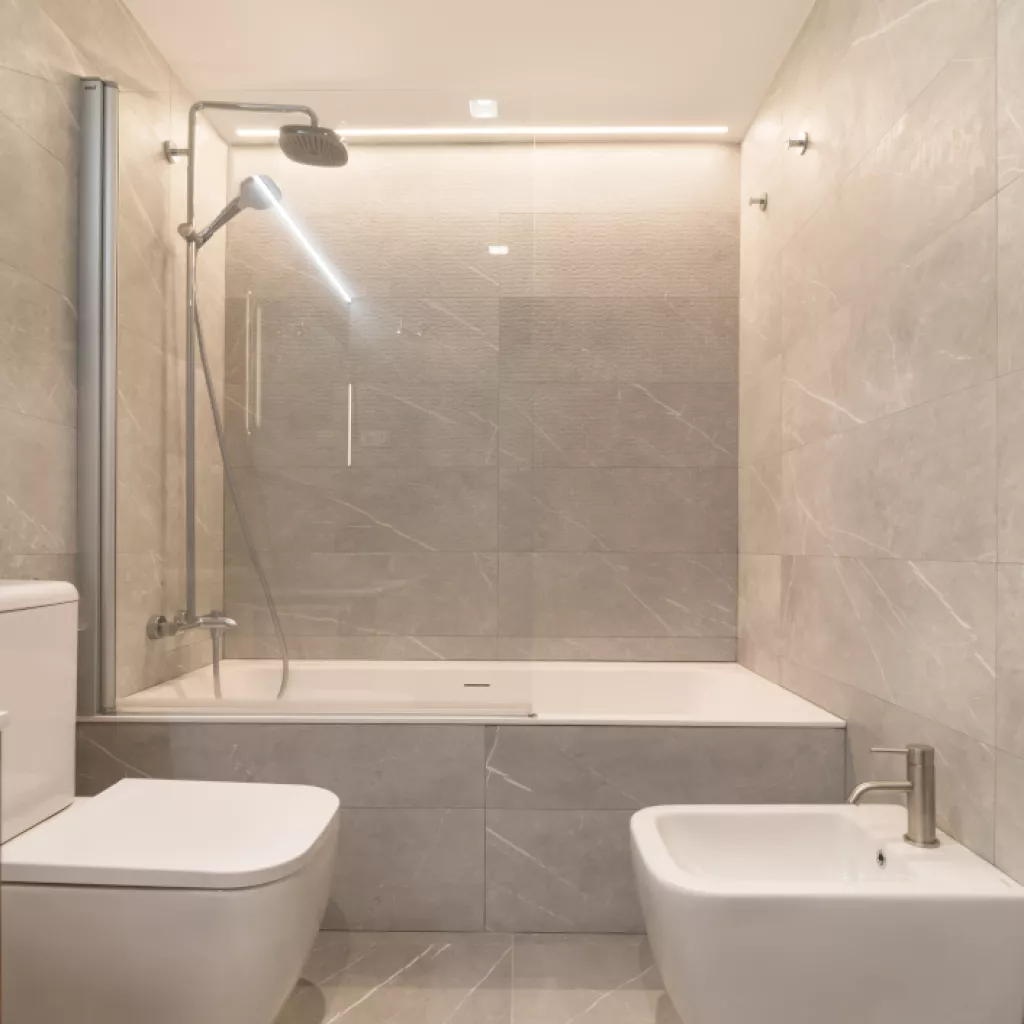El revestimiento en blanco mate que se funde con el suelo crea una sensación de continuidad y elegancia en el baño. Esta elección de diseño ayuda a ampliar visualmente el espacio y aporta una sensación de armonía. Además, el acabado en blanco es versátil y atemporal, lo que garantiza que el baño se mantenga moderno y sofisticado durante mucho tiempo.