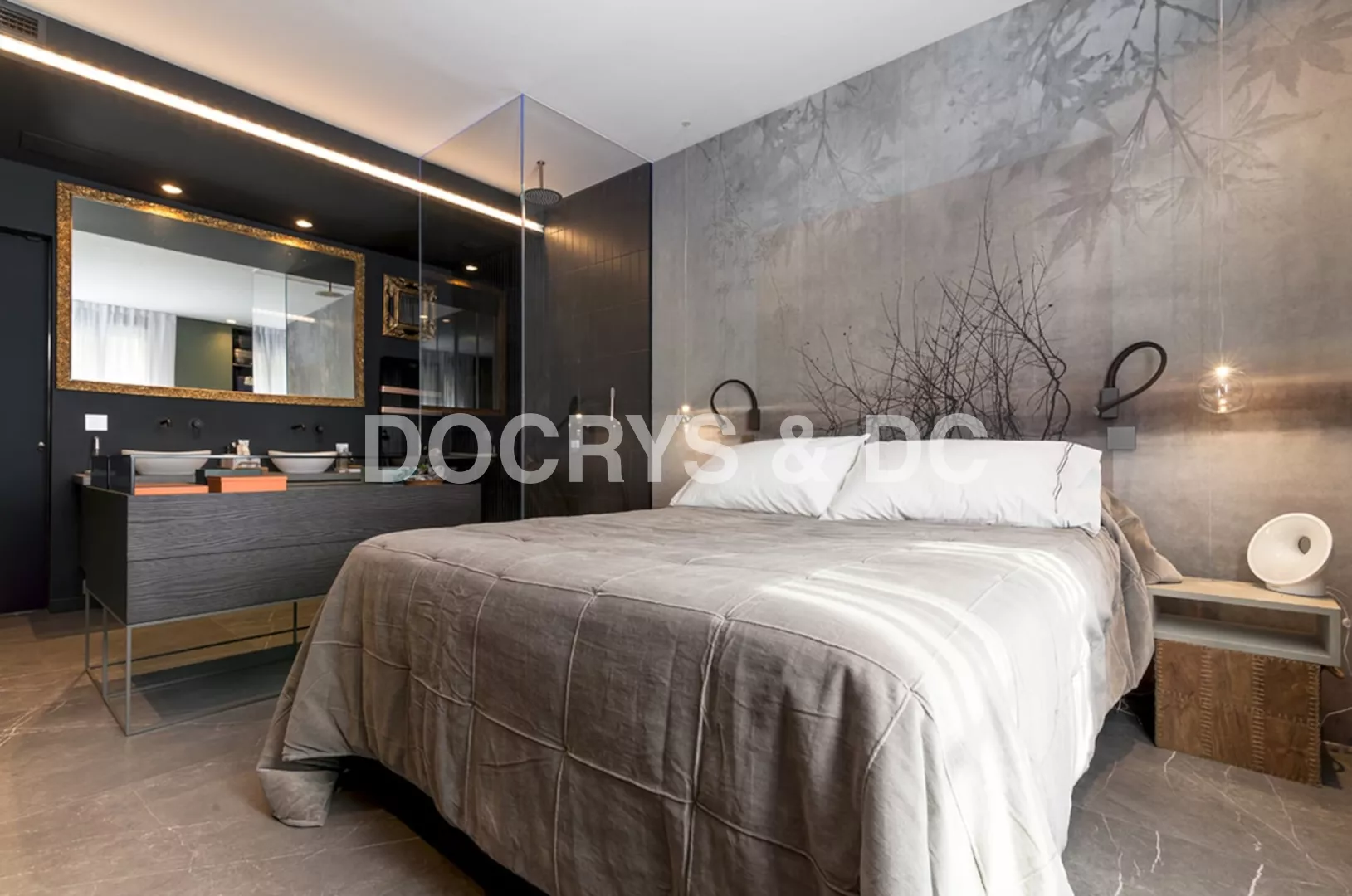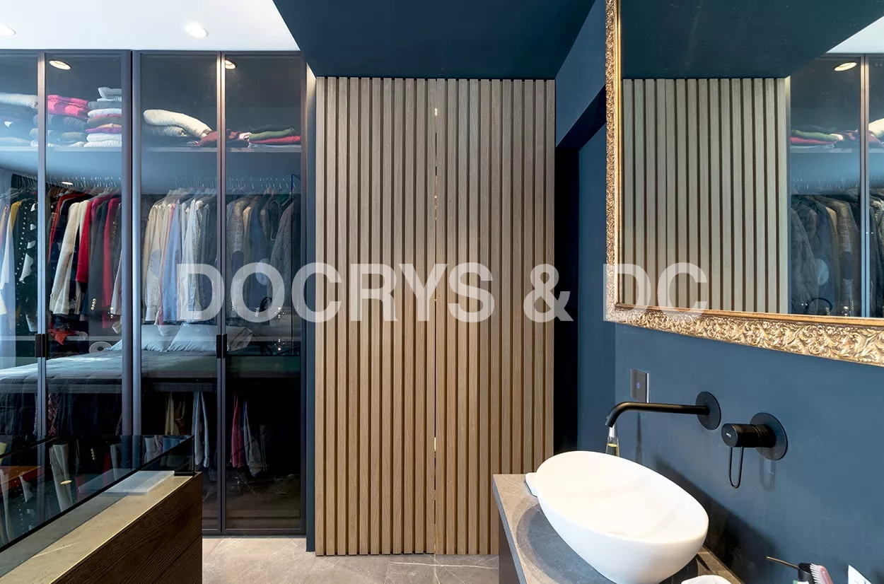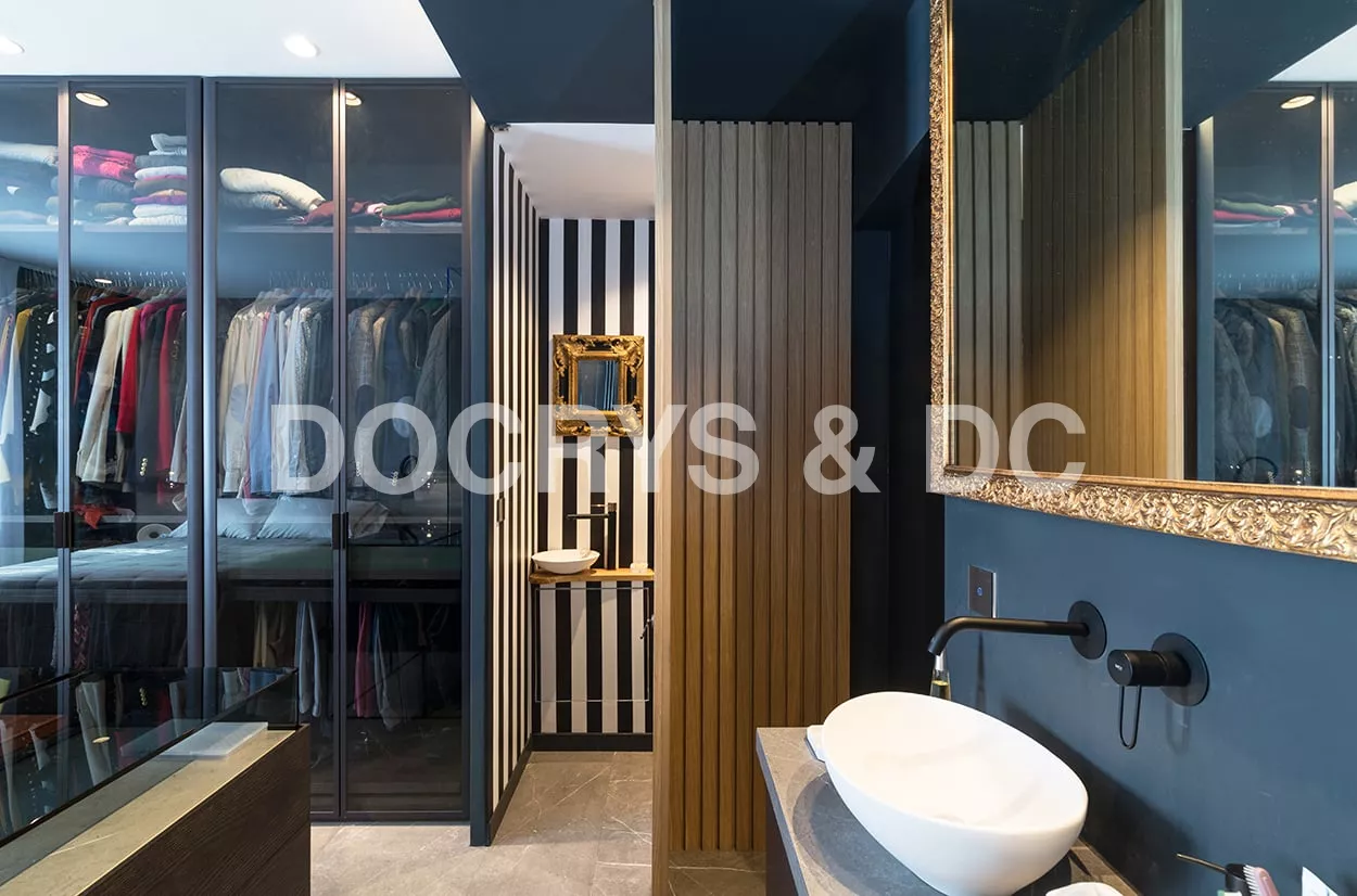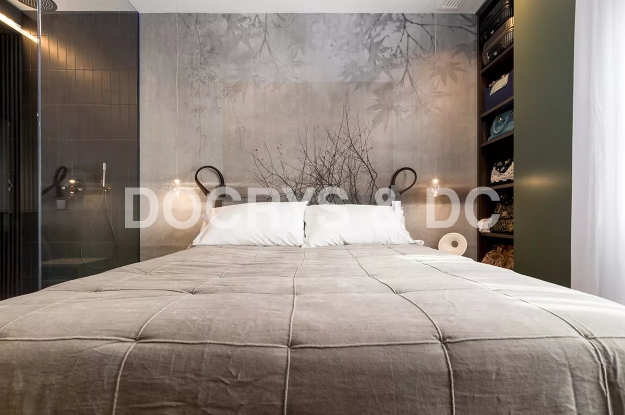 En el diseño de este dormitorio moderno con baño integrado y vestidor, intentamos crear un espacio que plasmara toda la personalidad de los usuarios. Creamos un espacio conjunto y muy visual.