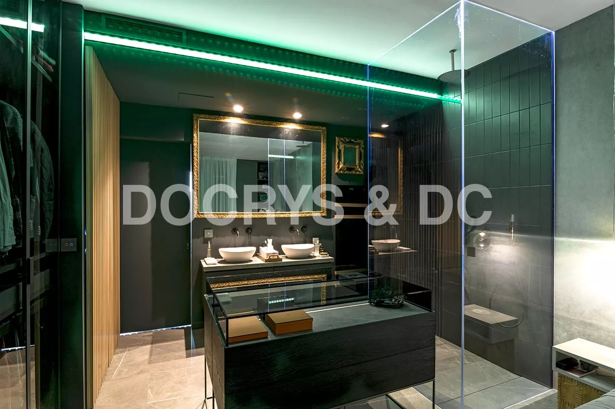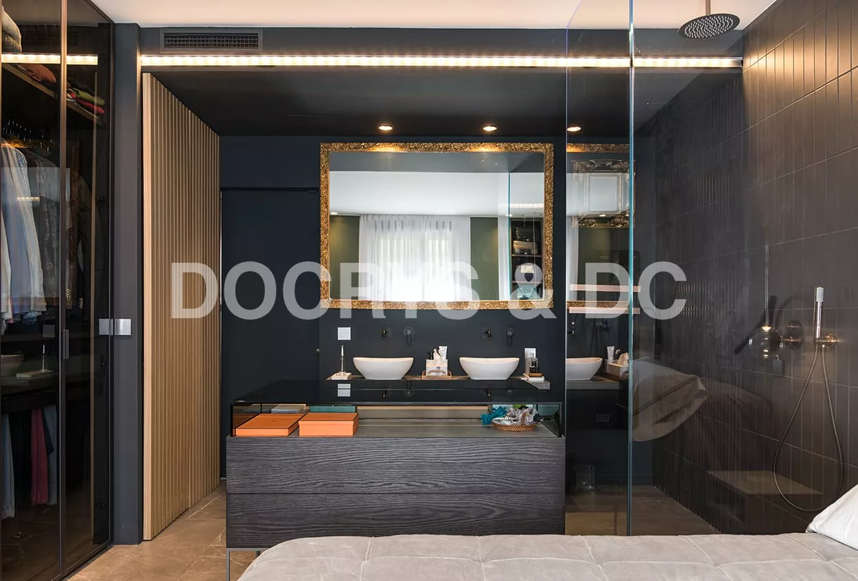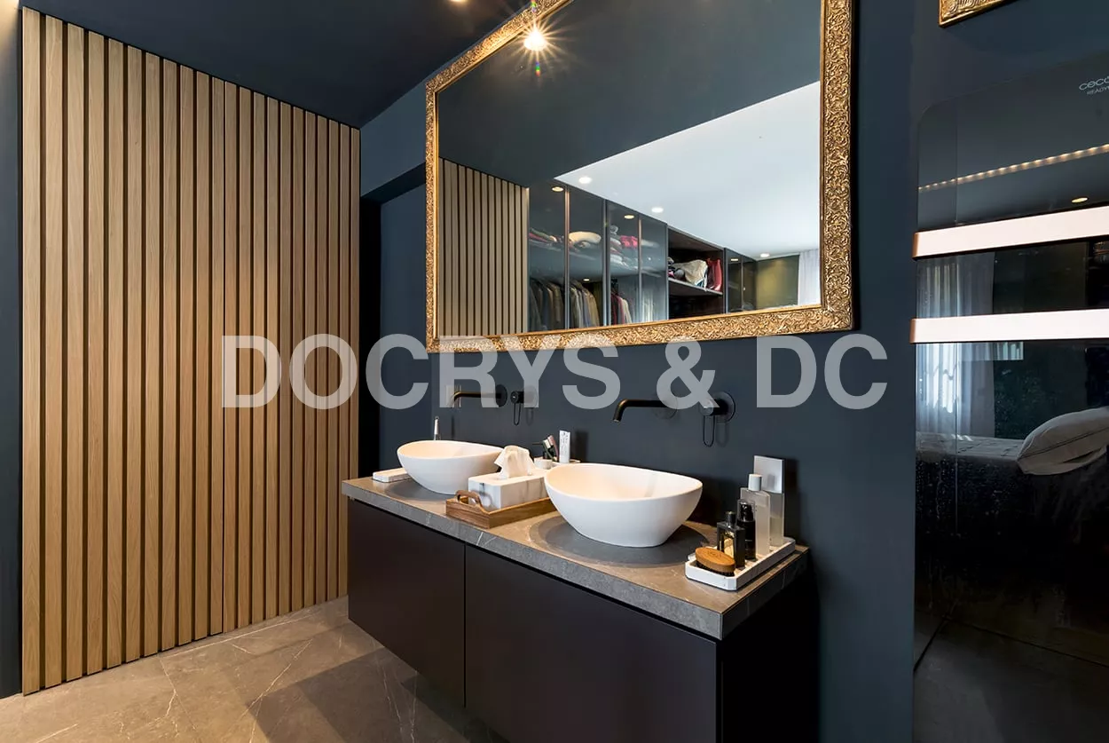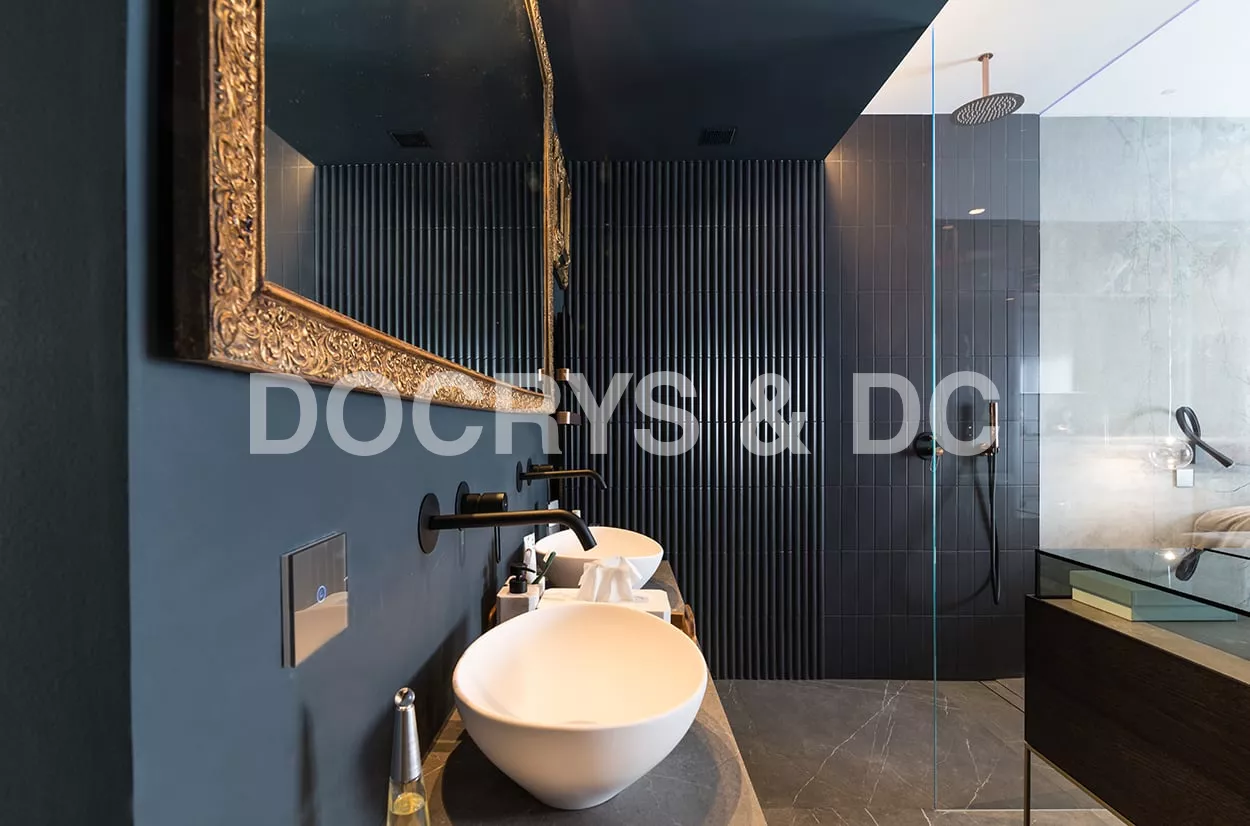 En el diseño de este dormitorio moderno con baño integrado y vestidor, intentamos crear un espacio que plasmara toda la personalidad de los usuarios. Creamos un espacio conjunto y muy visual.