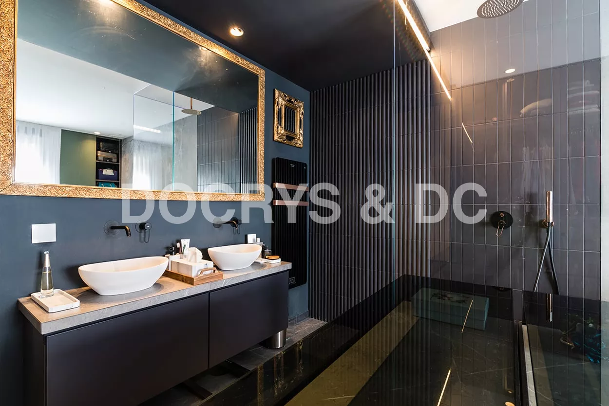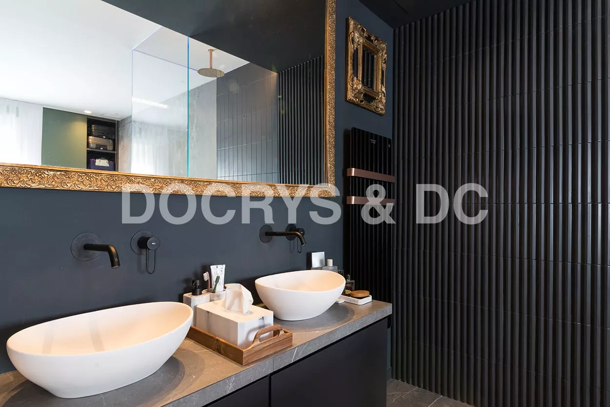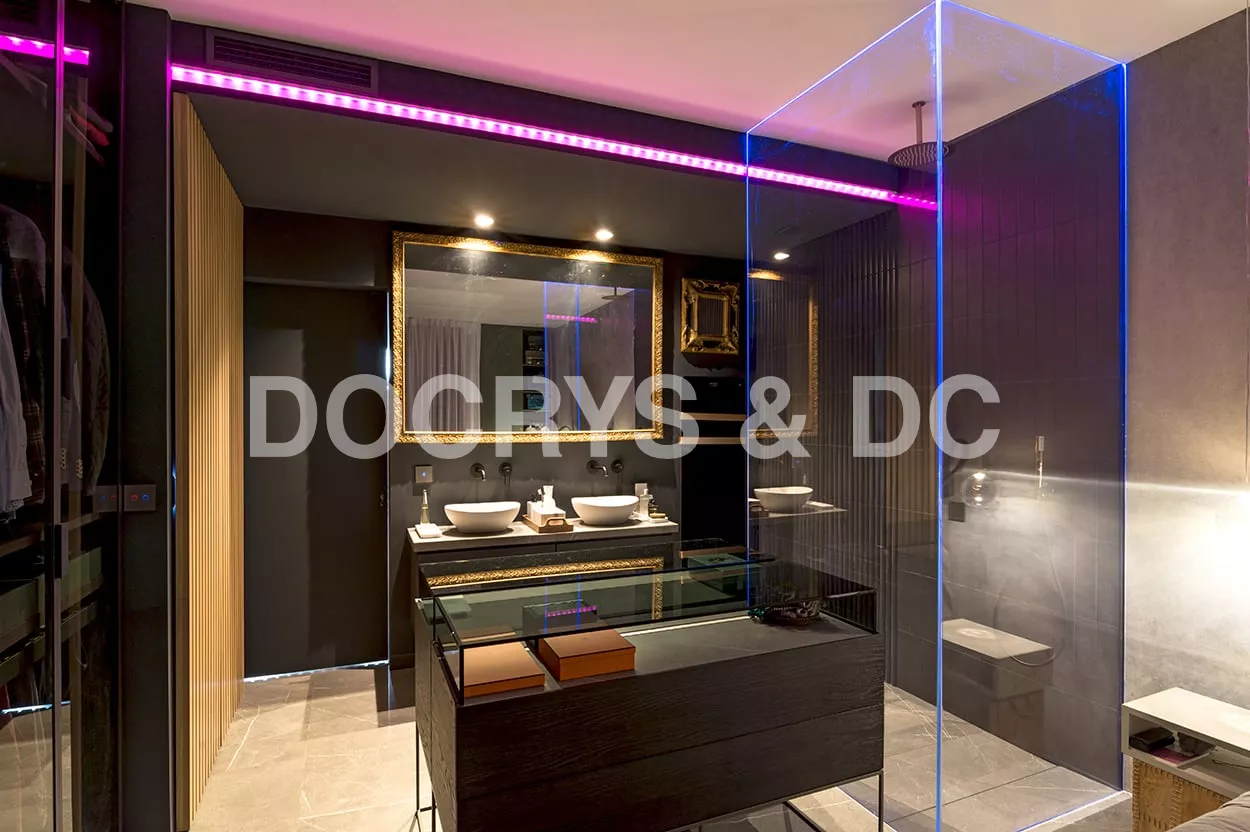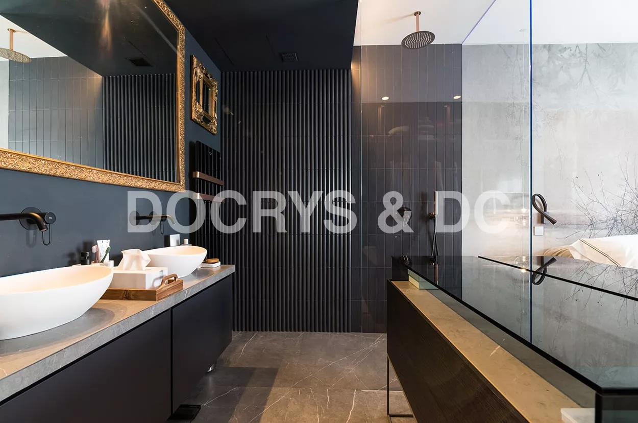 En el diseño de este dormitorio moderno con baño integrado y vestidor, intentamos crear un espacio que plasmara toda la personalidad de los usuarios. Creamos un espacio conjunto y muy visual.