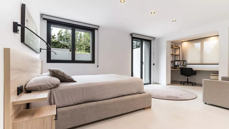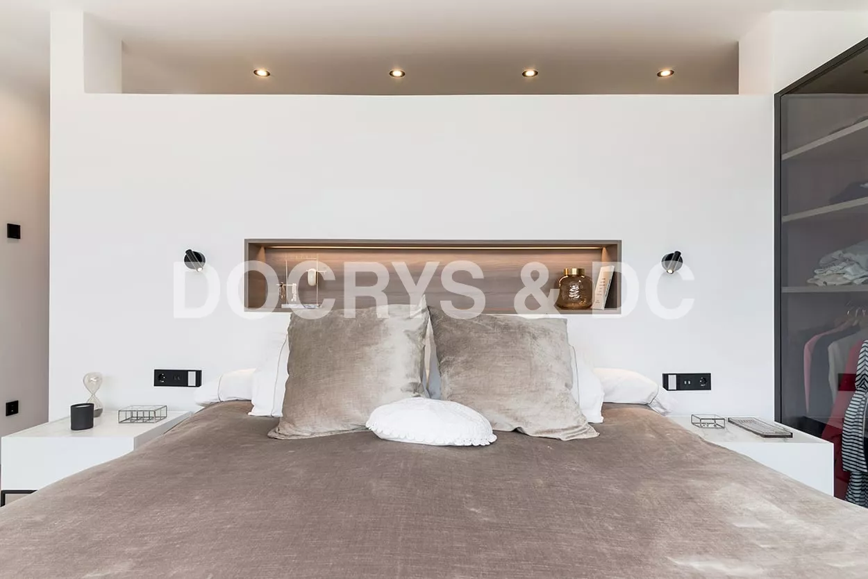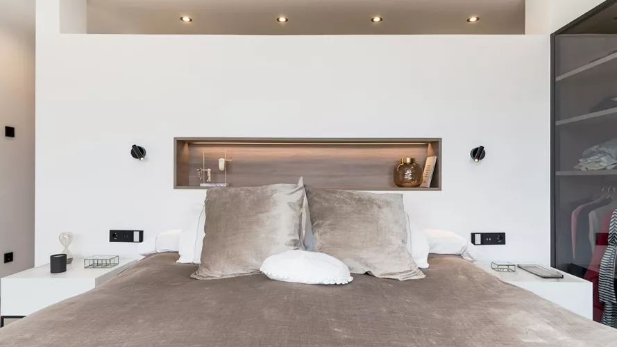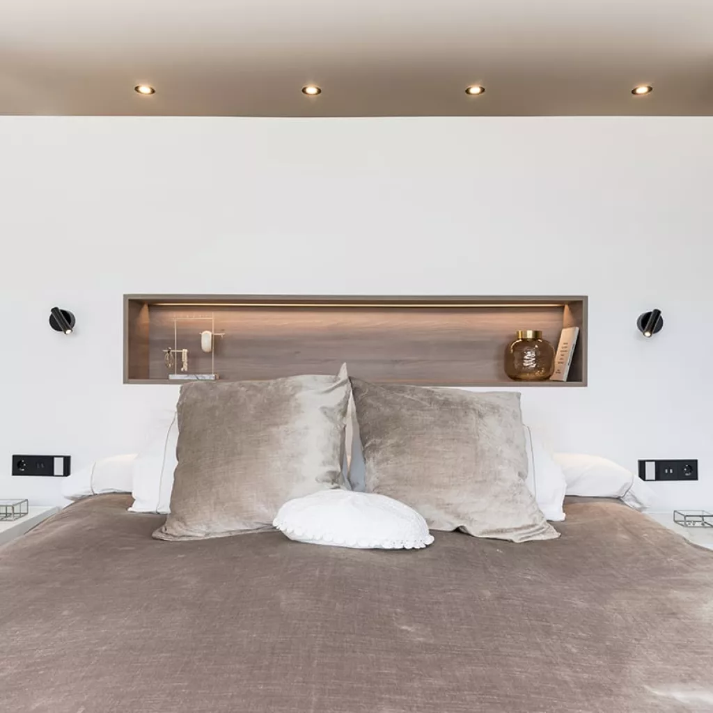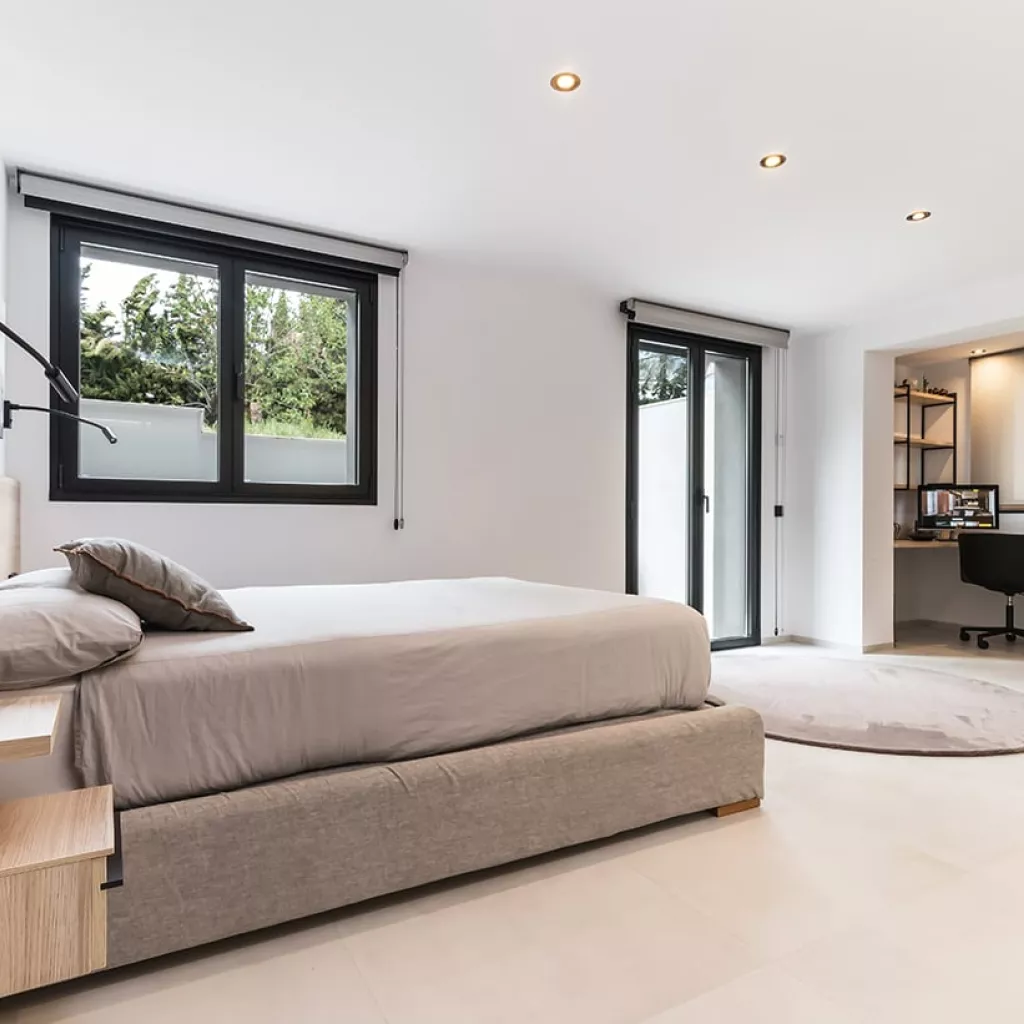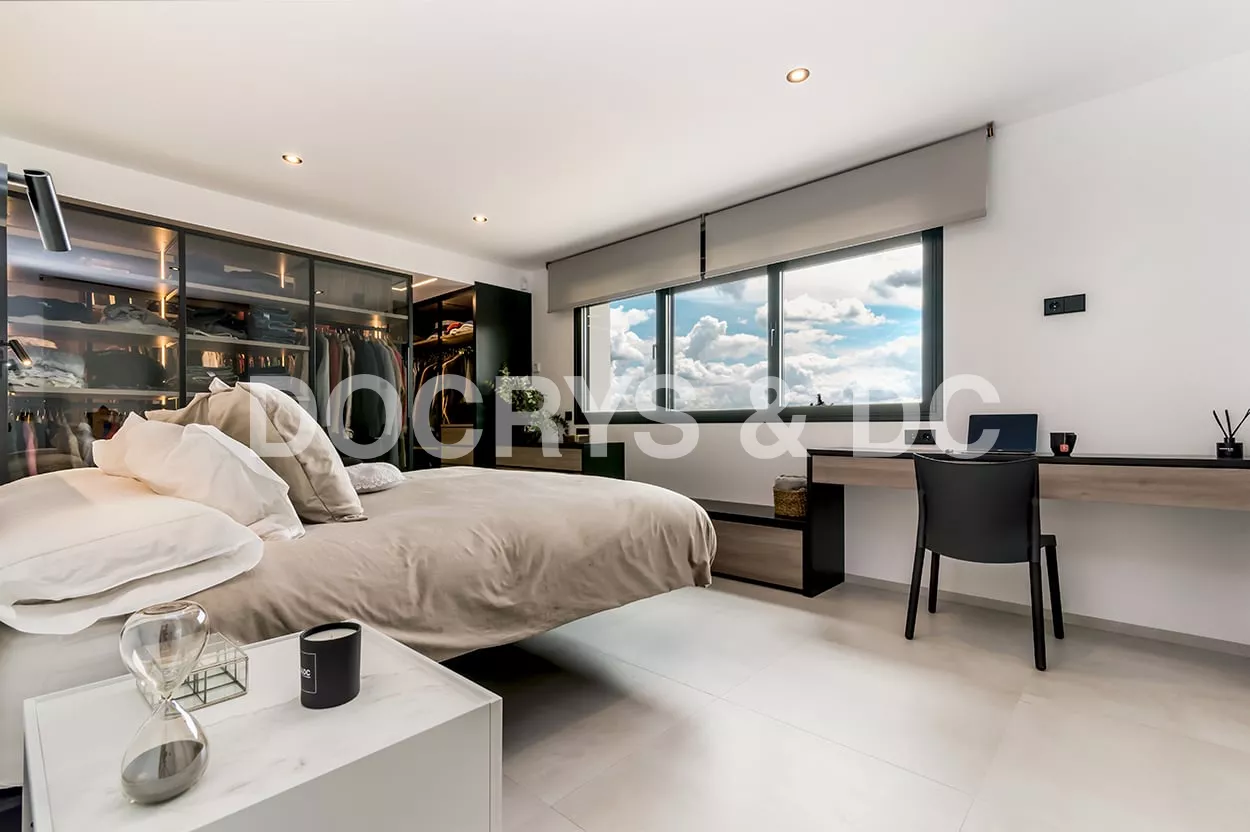 En el dormitorio también creamos un espacio abierto, uniendo el baño, dormitorio y vestidor.