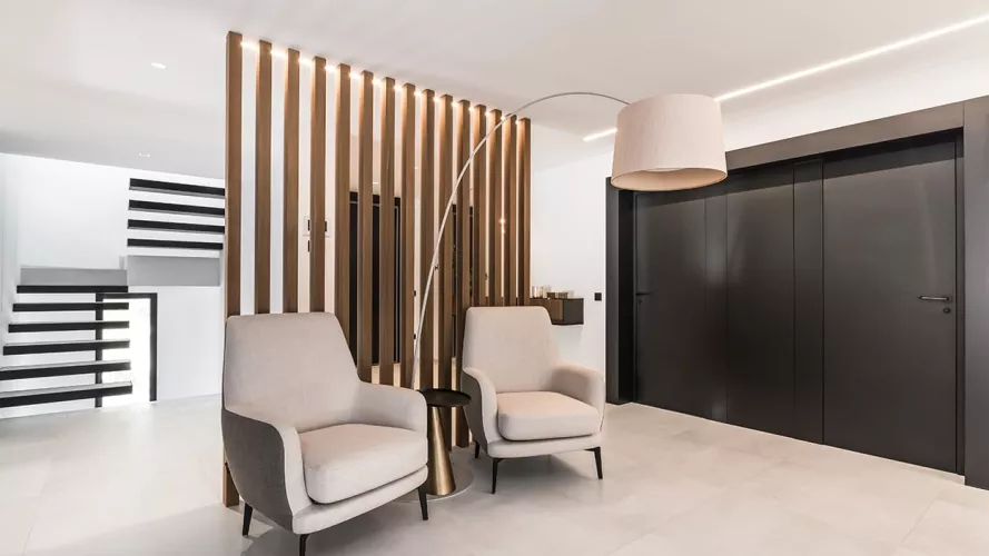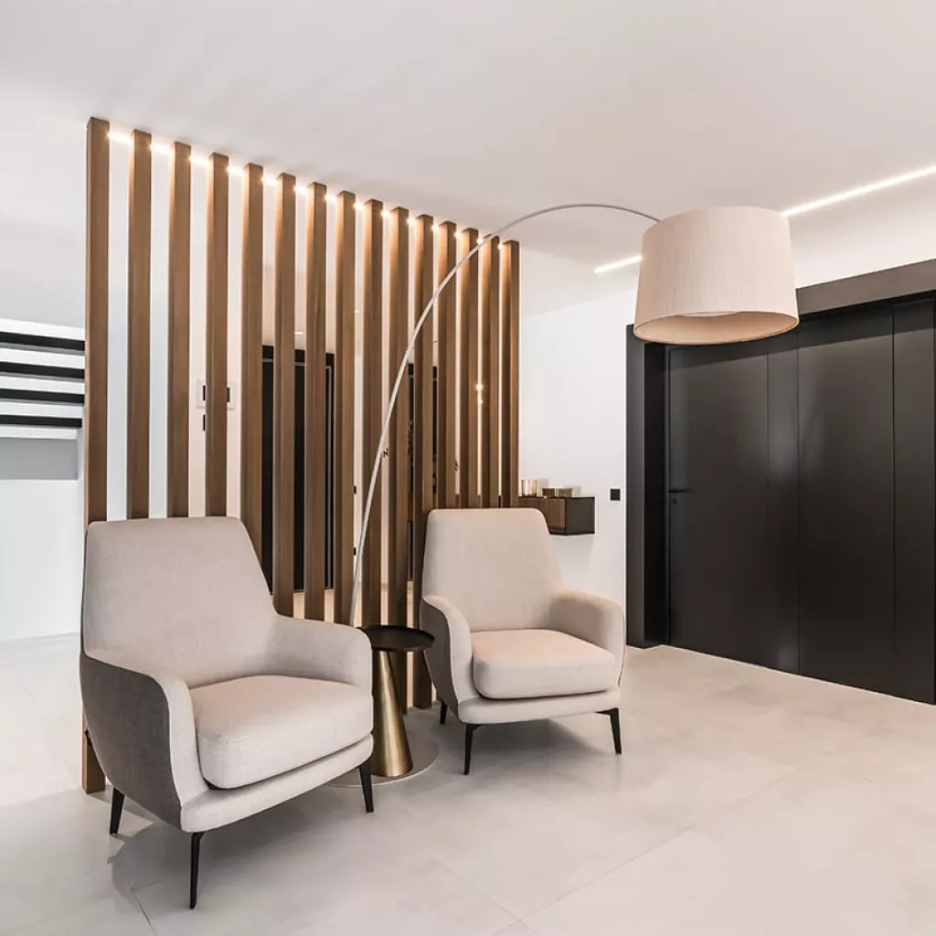 También, colocamos una palillería diseñada por Docrys & DC a modo de separación entre el recibidor y salón.