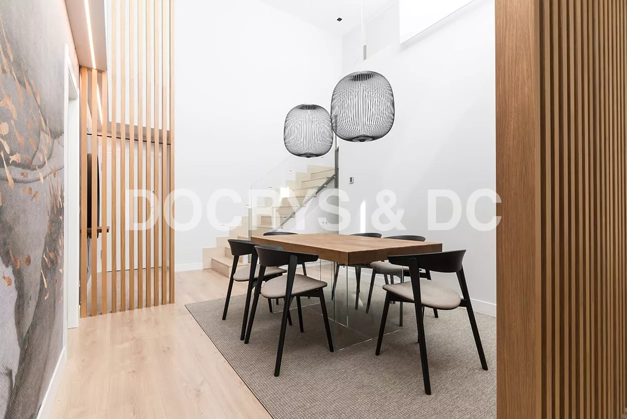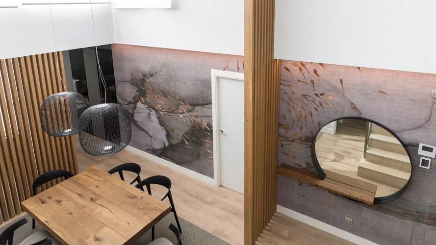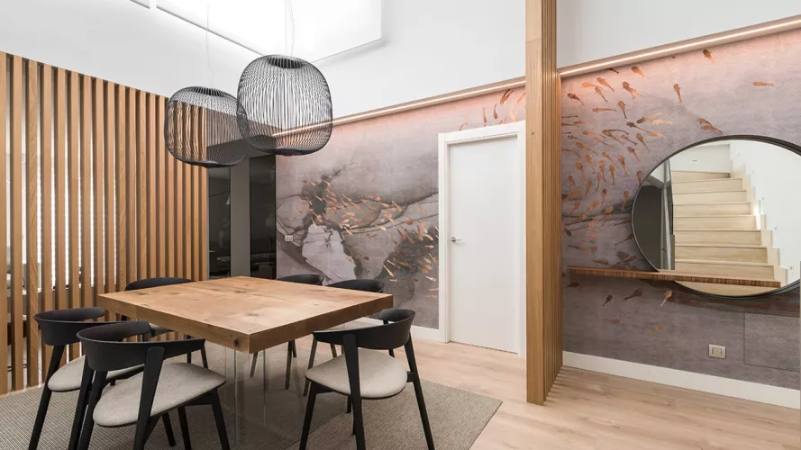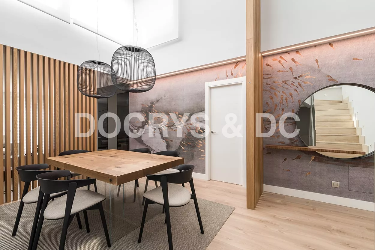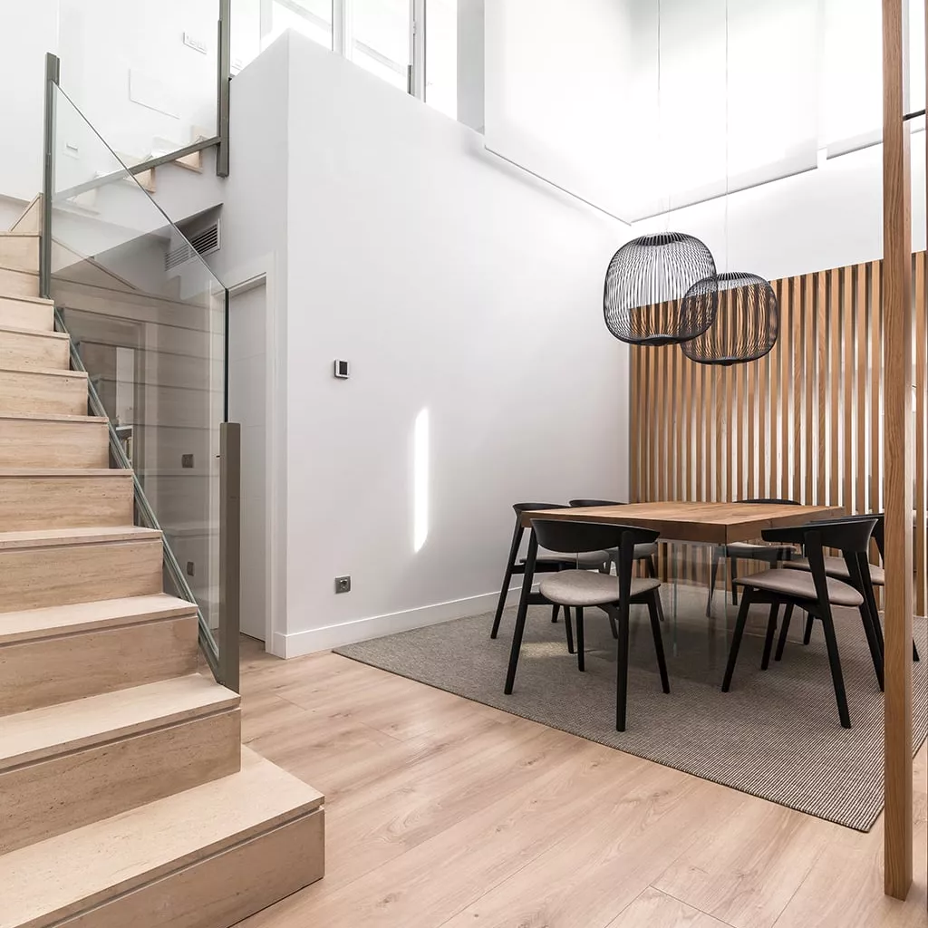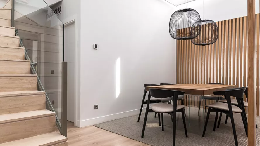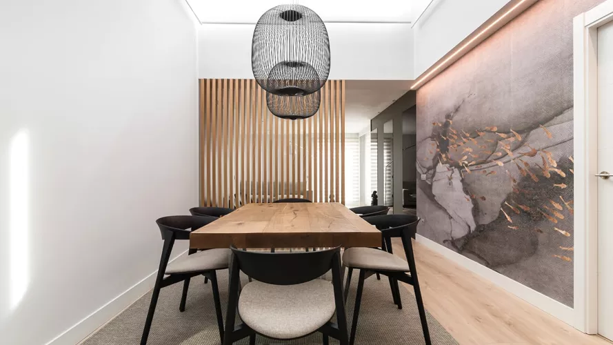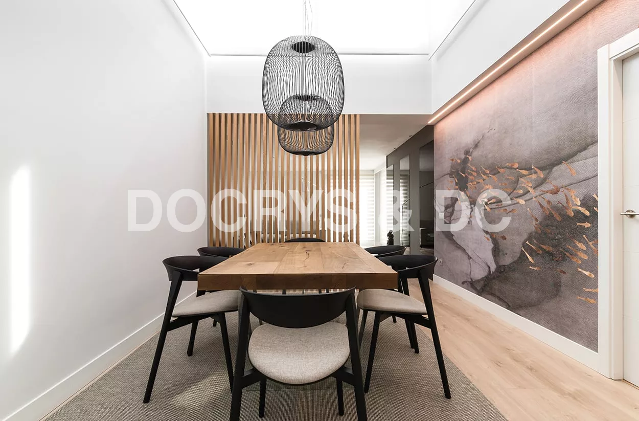 Proyecto de interiorismo y decoración de salón y comedor en un dúplex ubicado en una zona residencial de Aravaca.