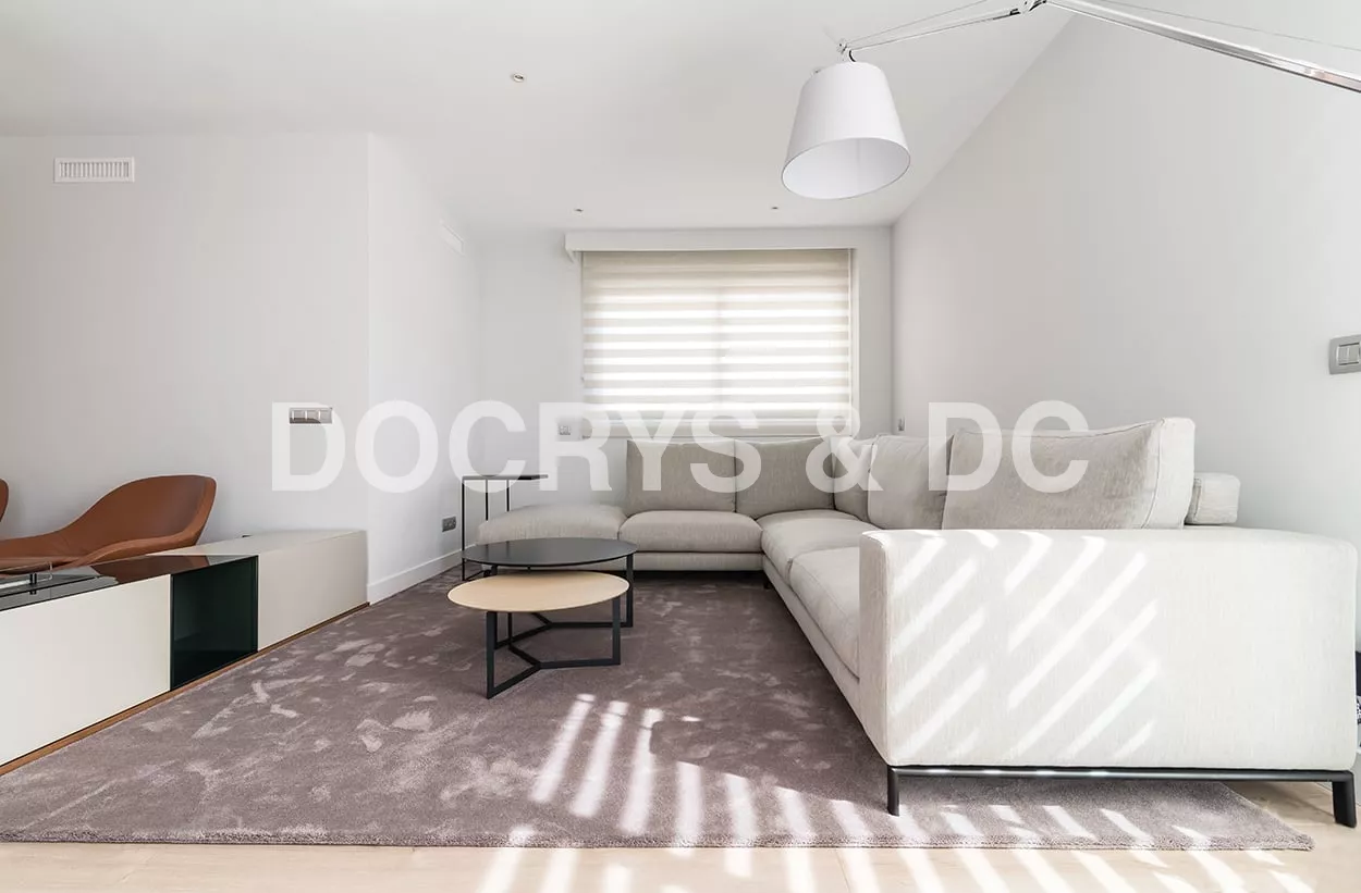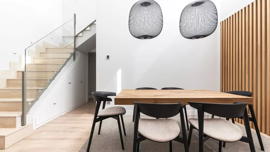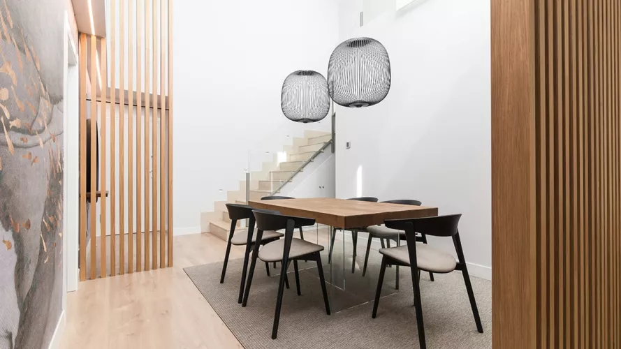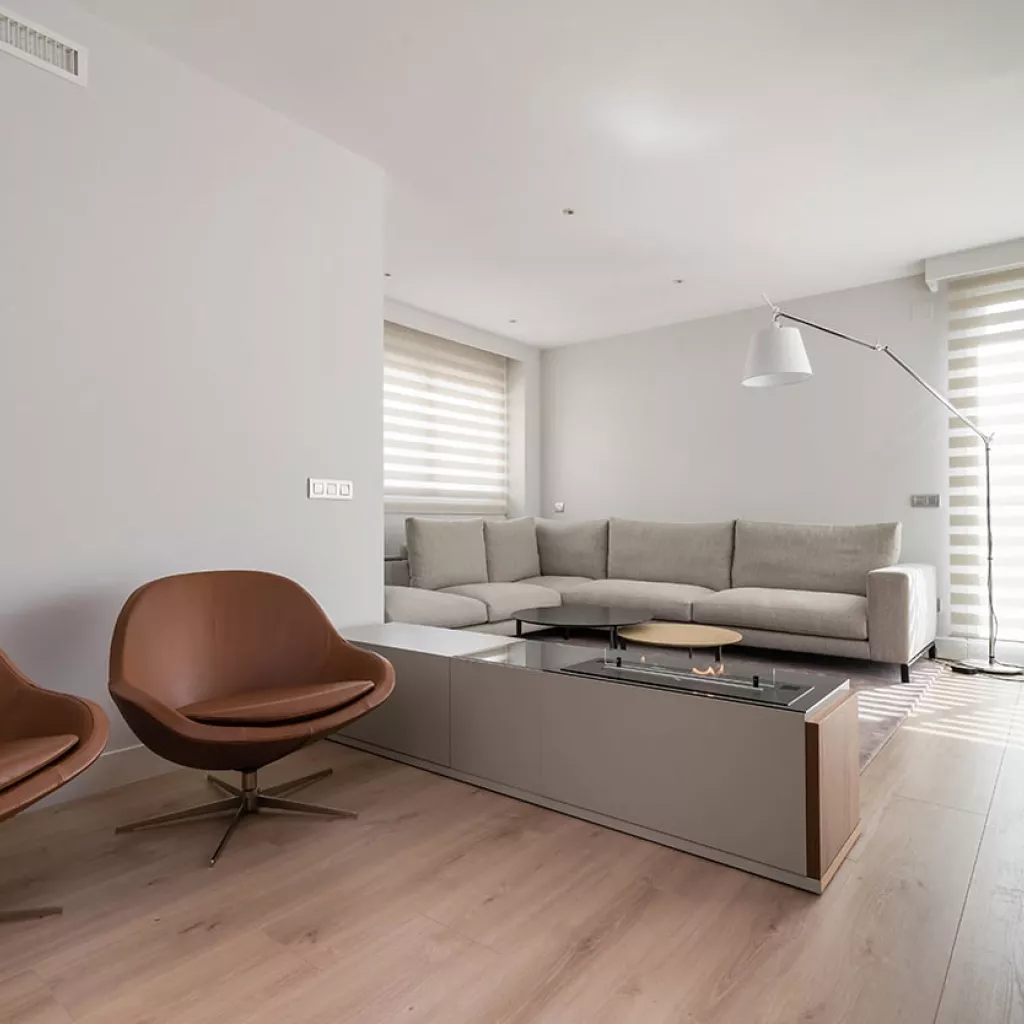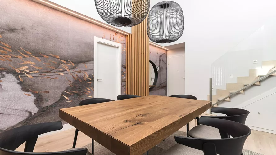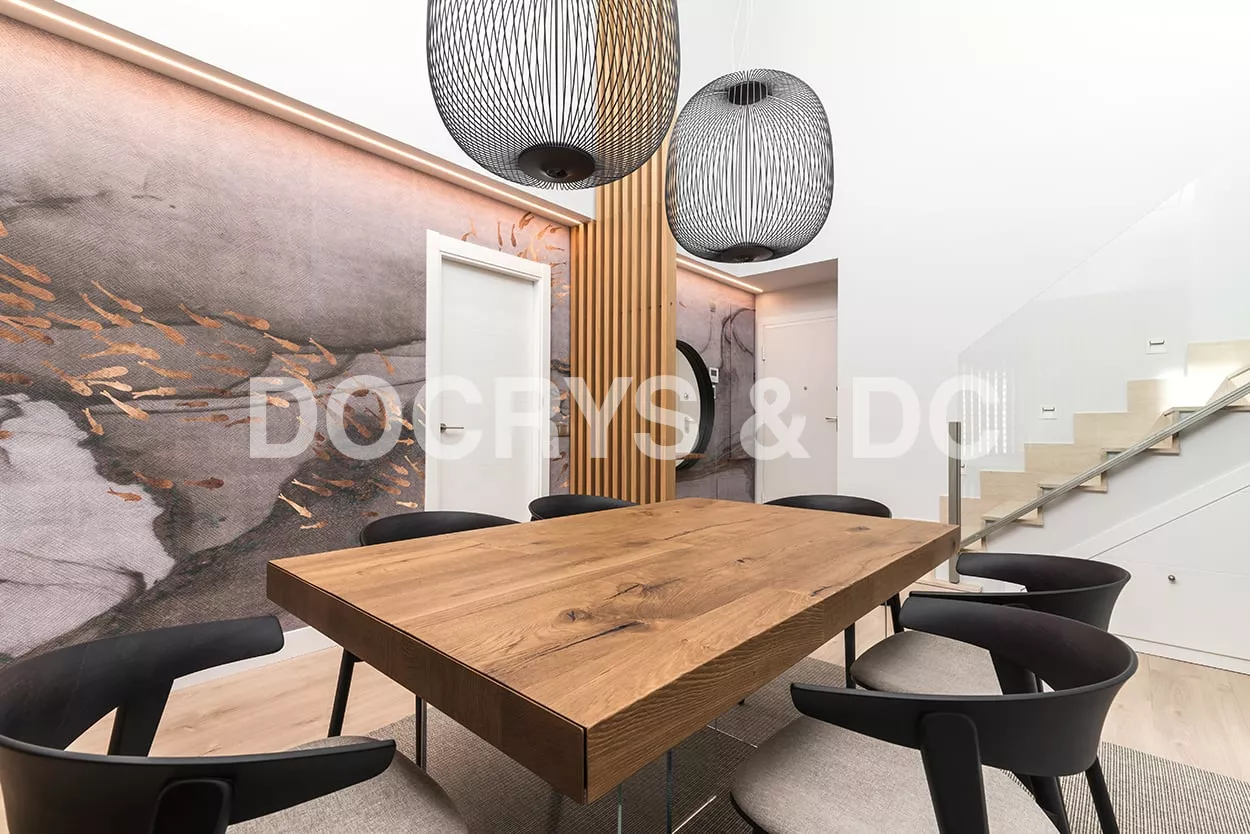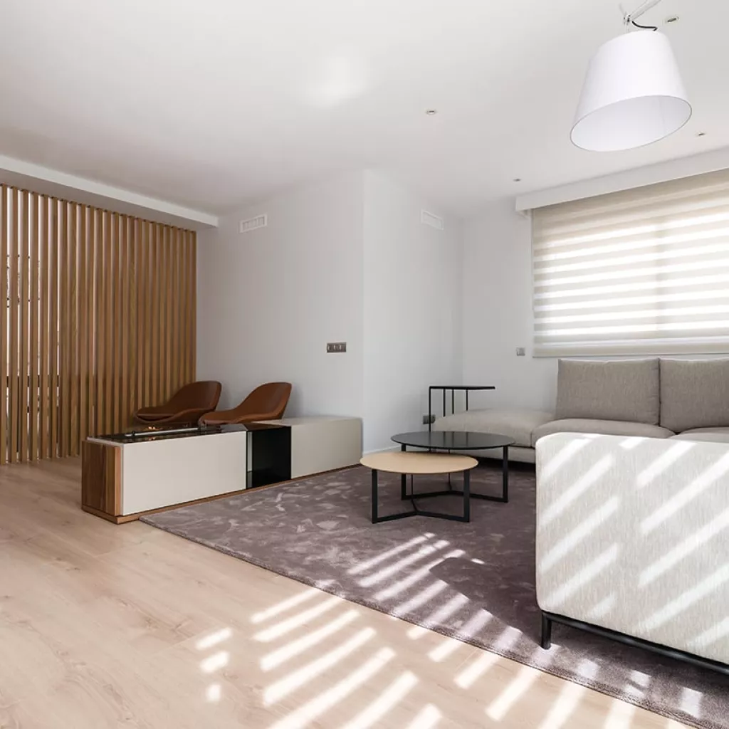 Proyecto de interiorismo y decoración de salón y comedor en un dúplex ubicado en una zona residencial de Aravaca.