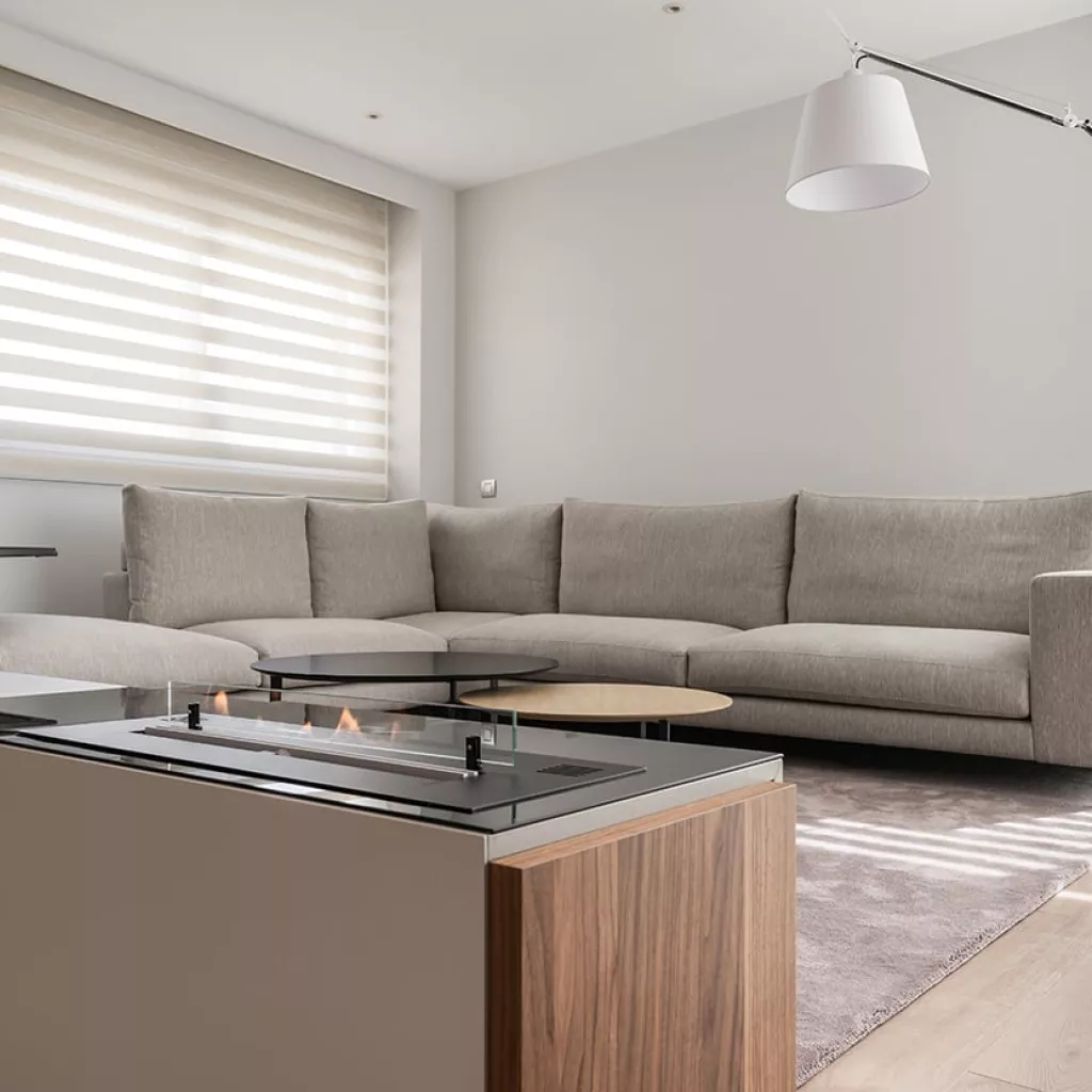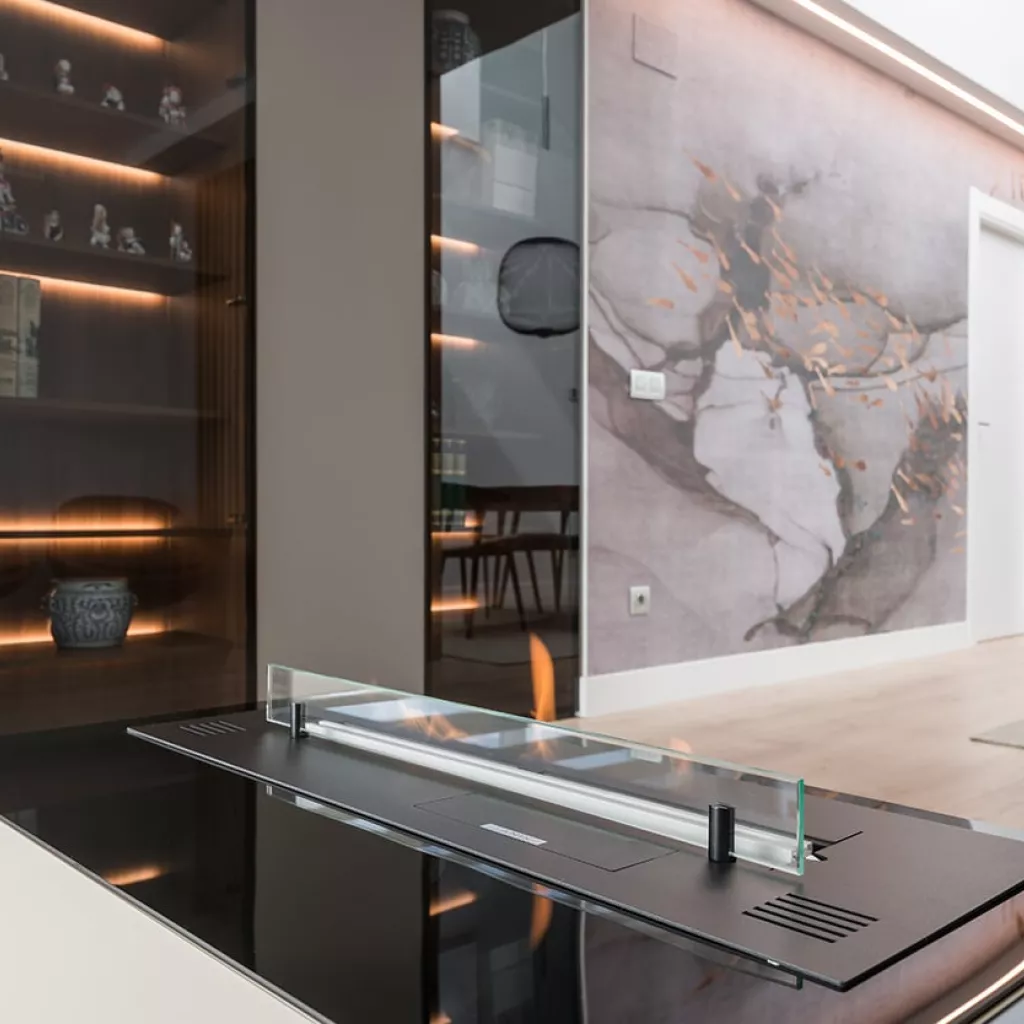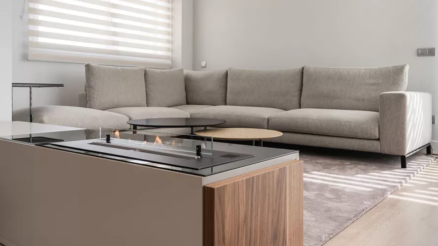 El mueble de TV de emede con chimenea integrada de Planika, enamora a cualquier persona que entre a la estancia, creando un ambiente perfecto para compartir momentos en familia o con amigos.