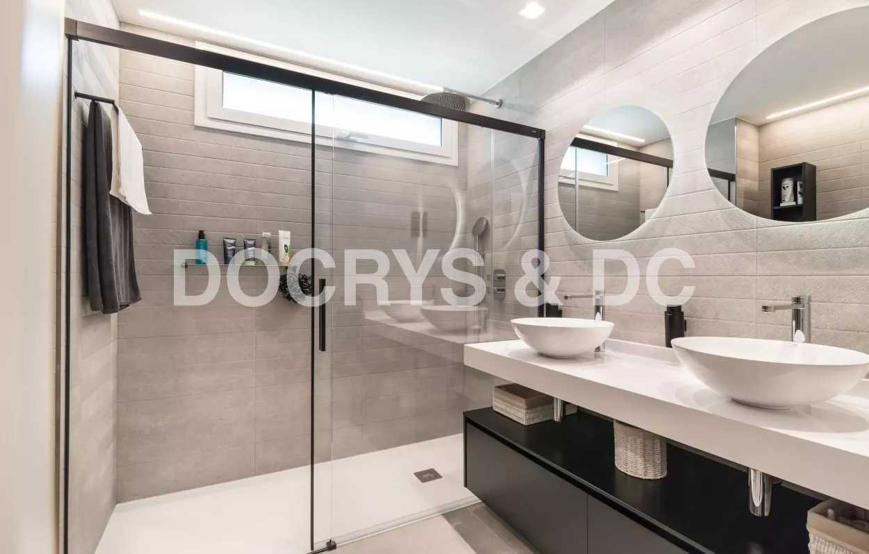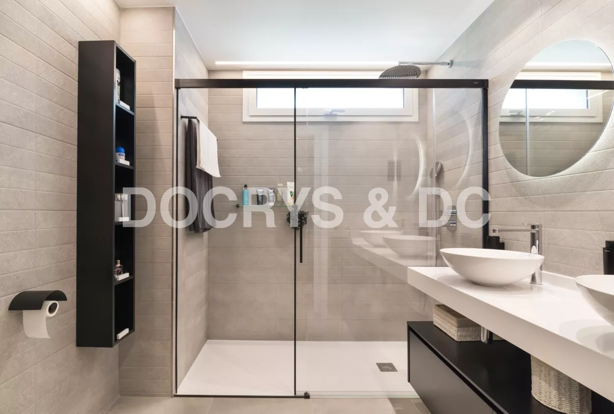 El diseño de los tres baños de la casa, siguen un mismo hilo, sencillez, diseño y comodidad, cada uno con un estilo diferente pero con el mismo carácter y personalidad.