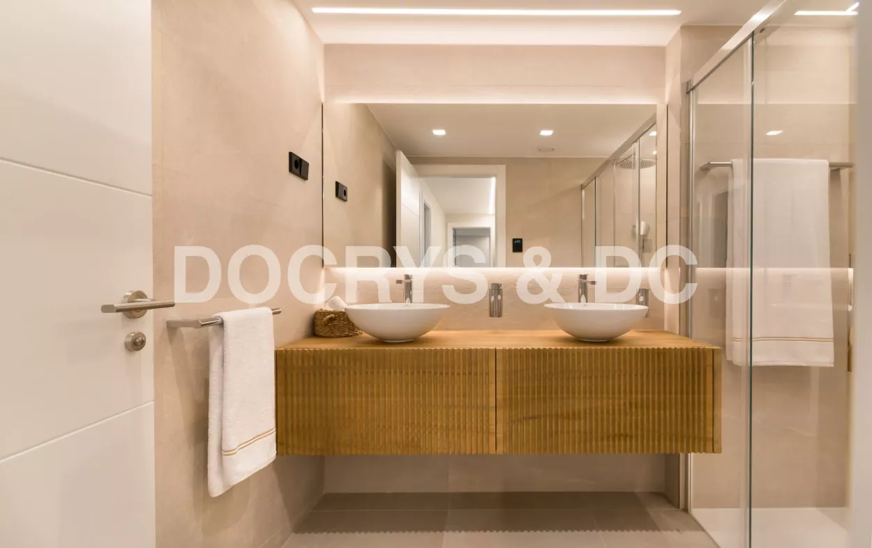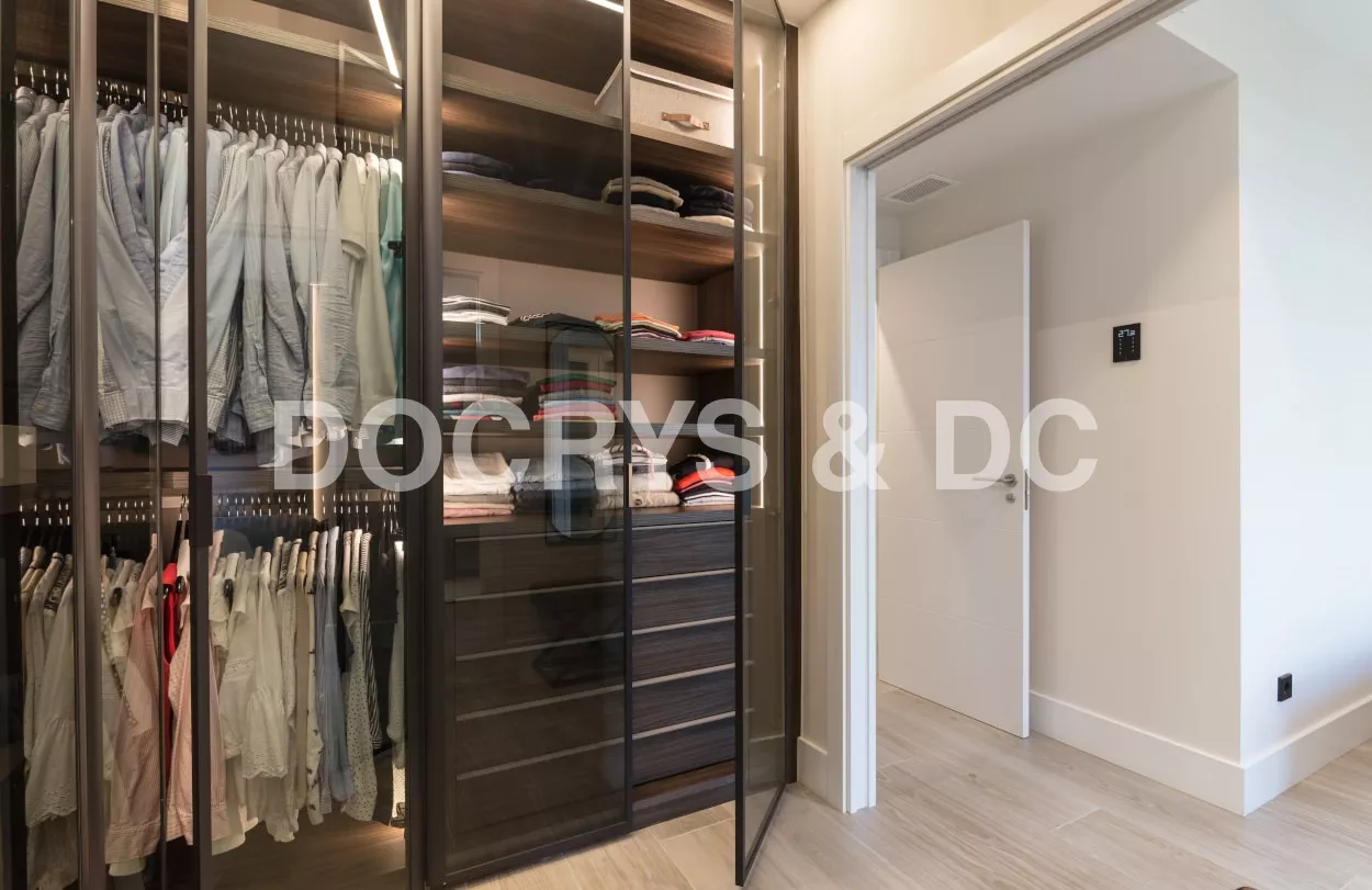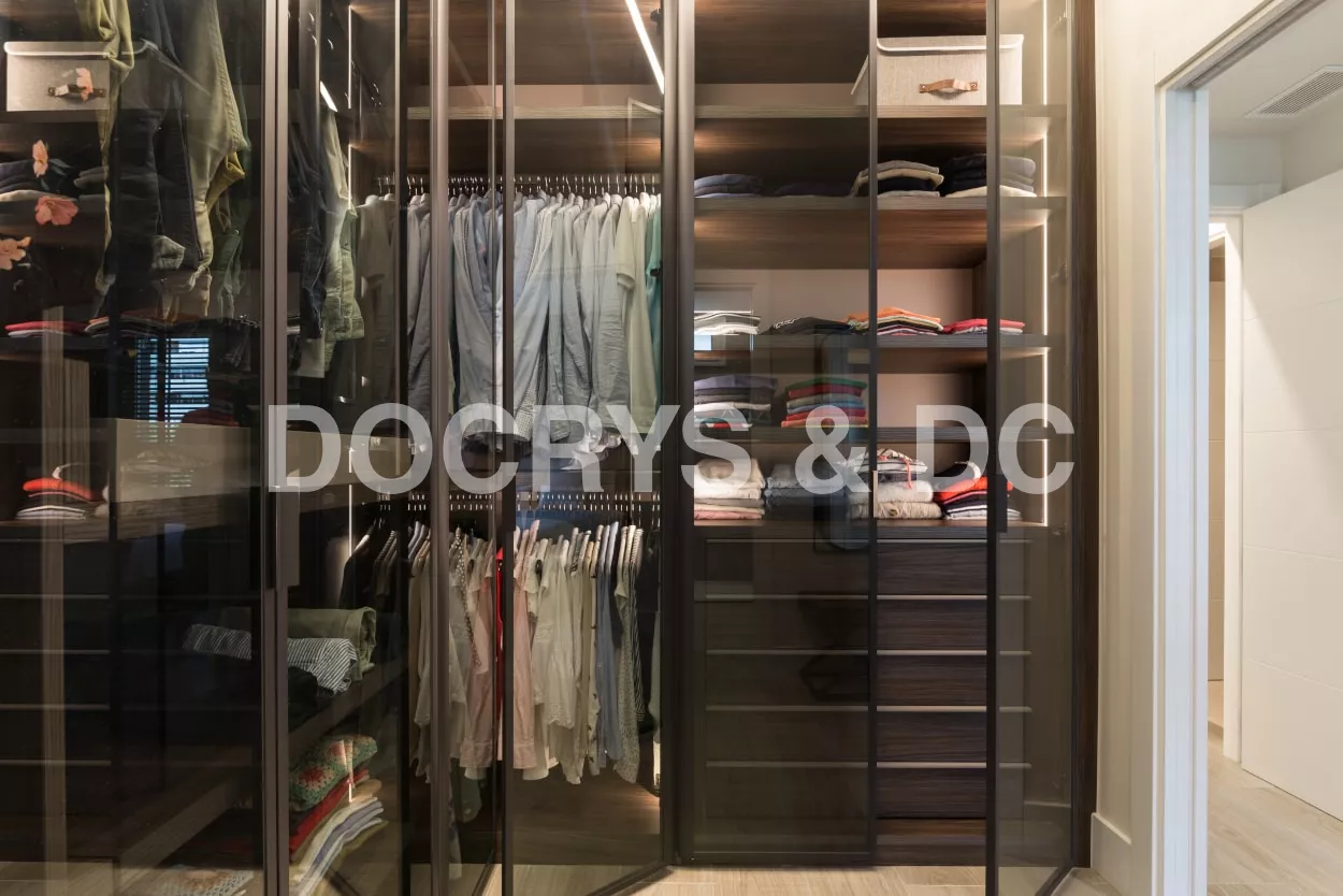 La suite principal de la vivienda la componen el dormitorio, vestidor abierto y baño. Un espacio cómodo, pero de diseño moderno.