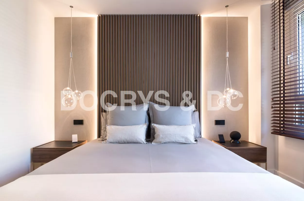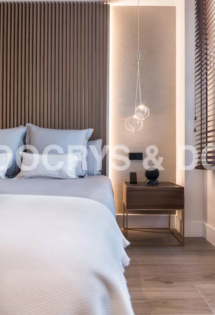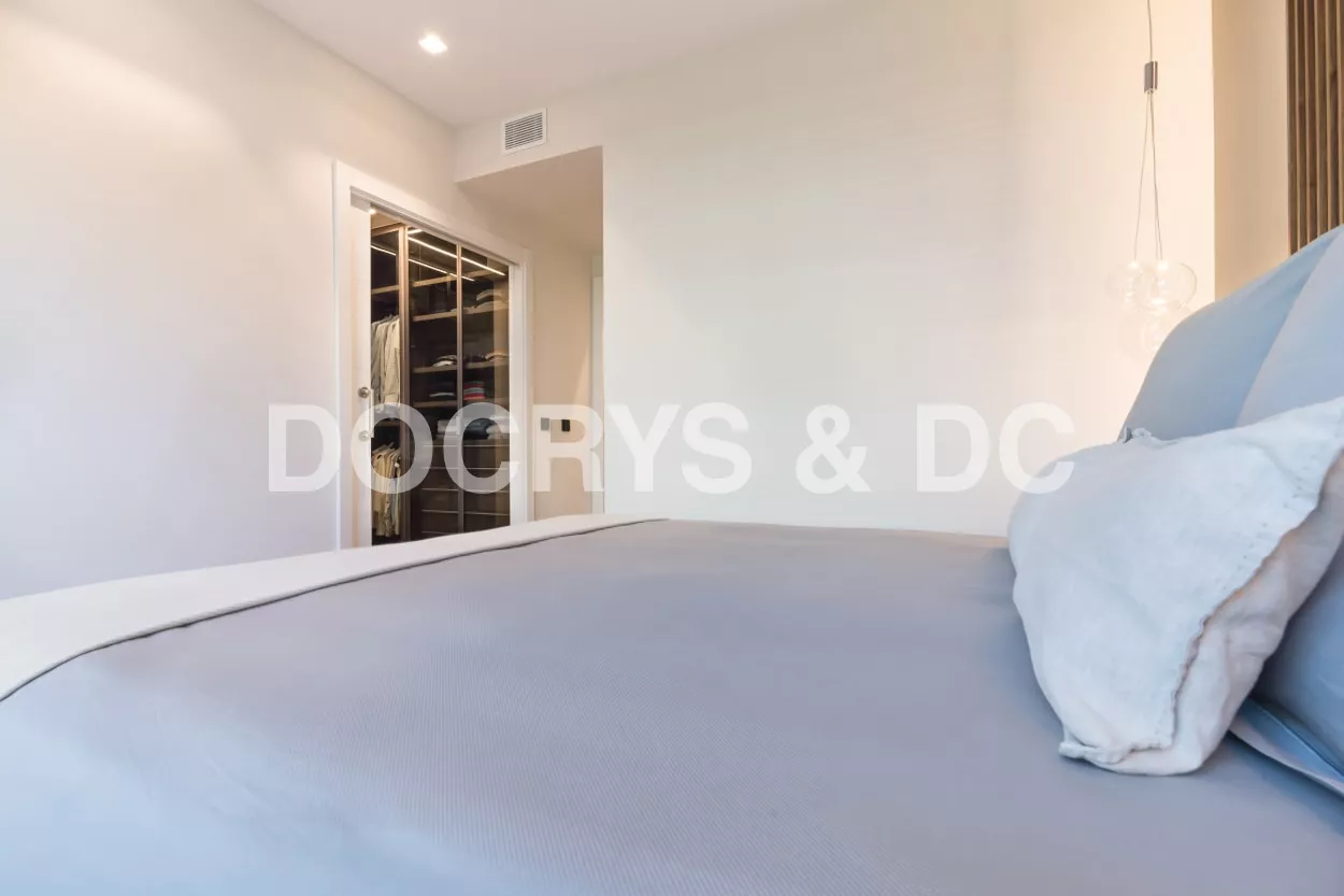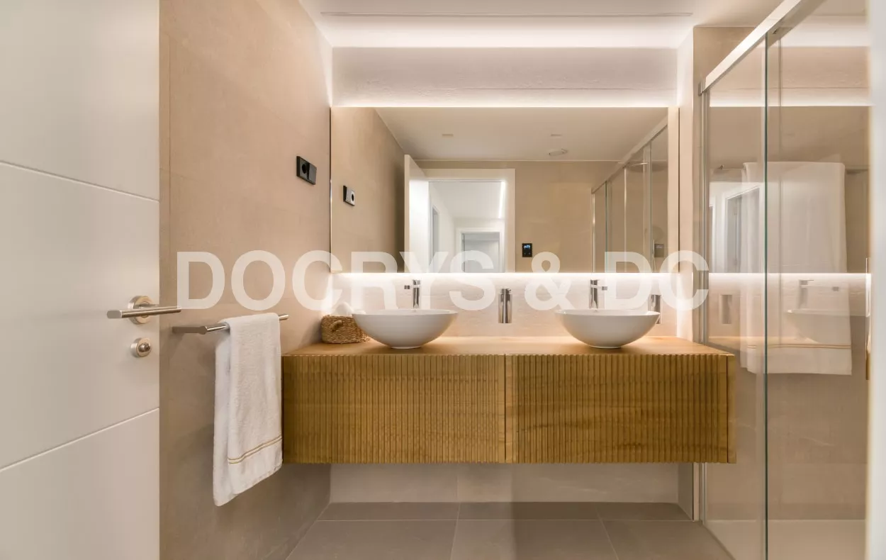 La suite principal de la vivienda la componen el dormitorio, vestidor abierto y baño. Un espacio cómodo, pero de diseño moderno.