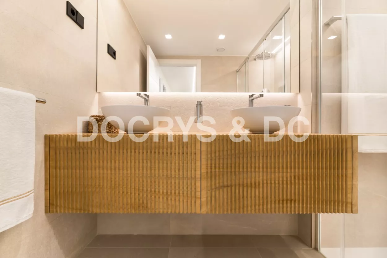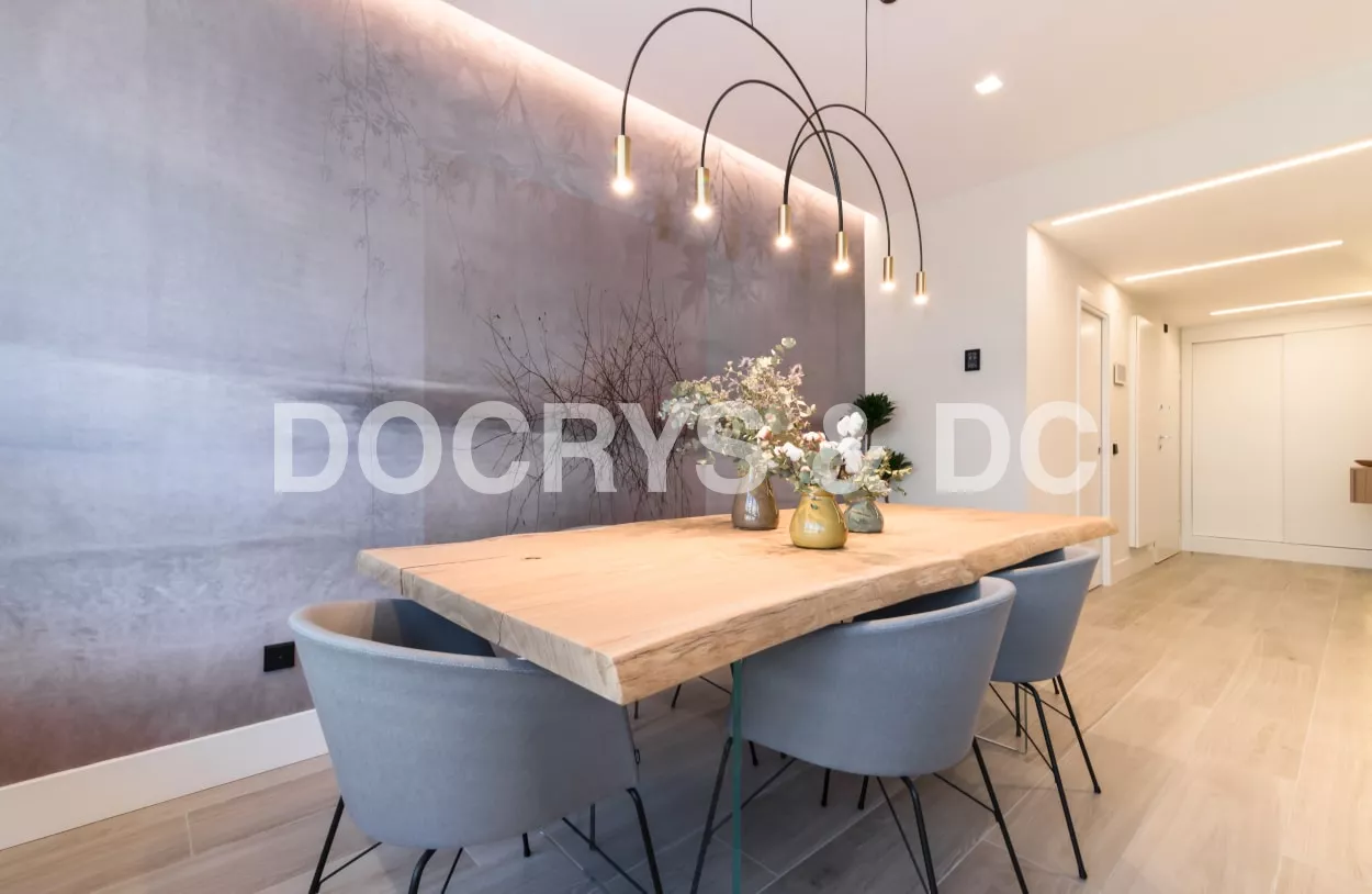 Esta estancia se compone de recibidor, cocina, comedor y salón, todo integrado en un mismo espacio y suprimiendo las barreras arquitectónicas, obteniendo como resultado un espacio amplio, luminoso y muy funcional.