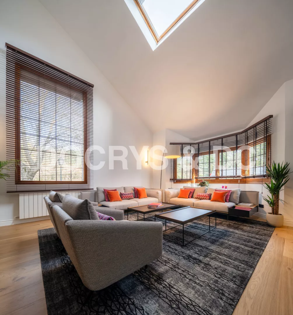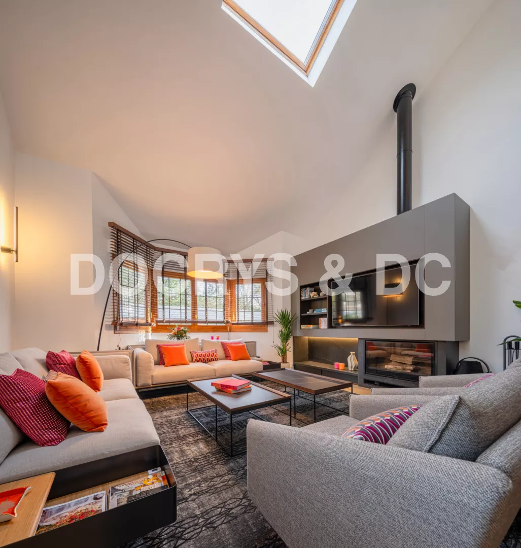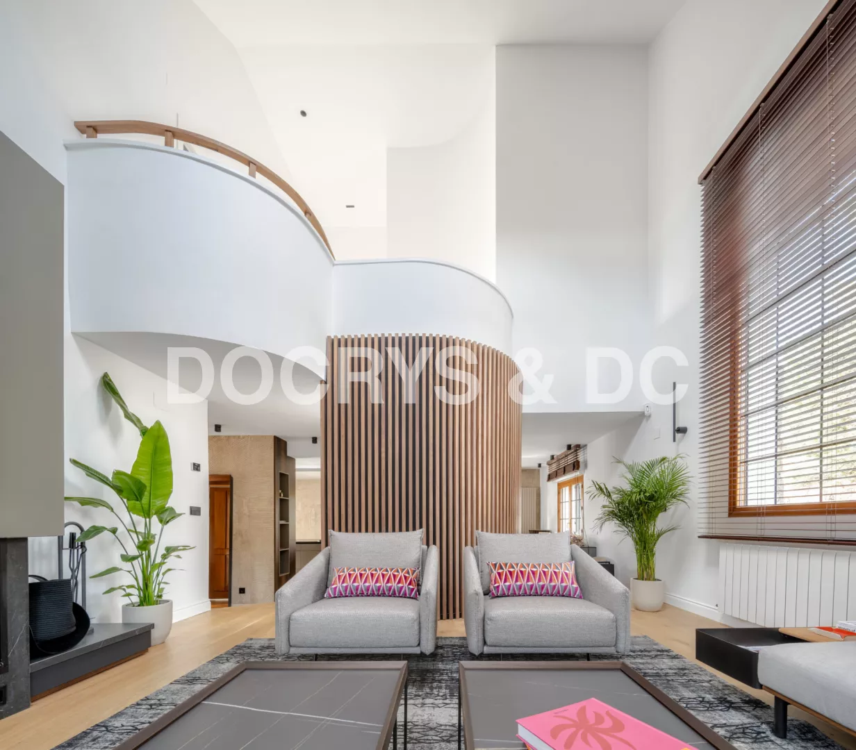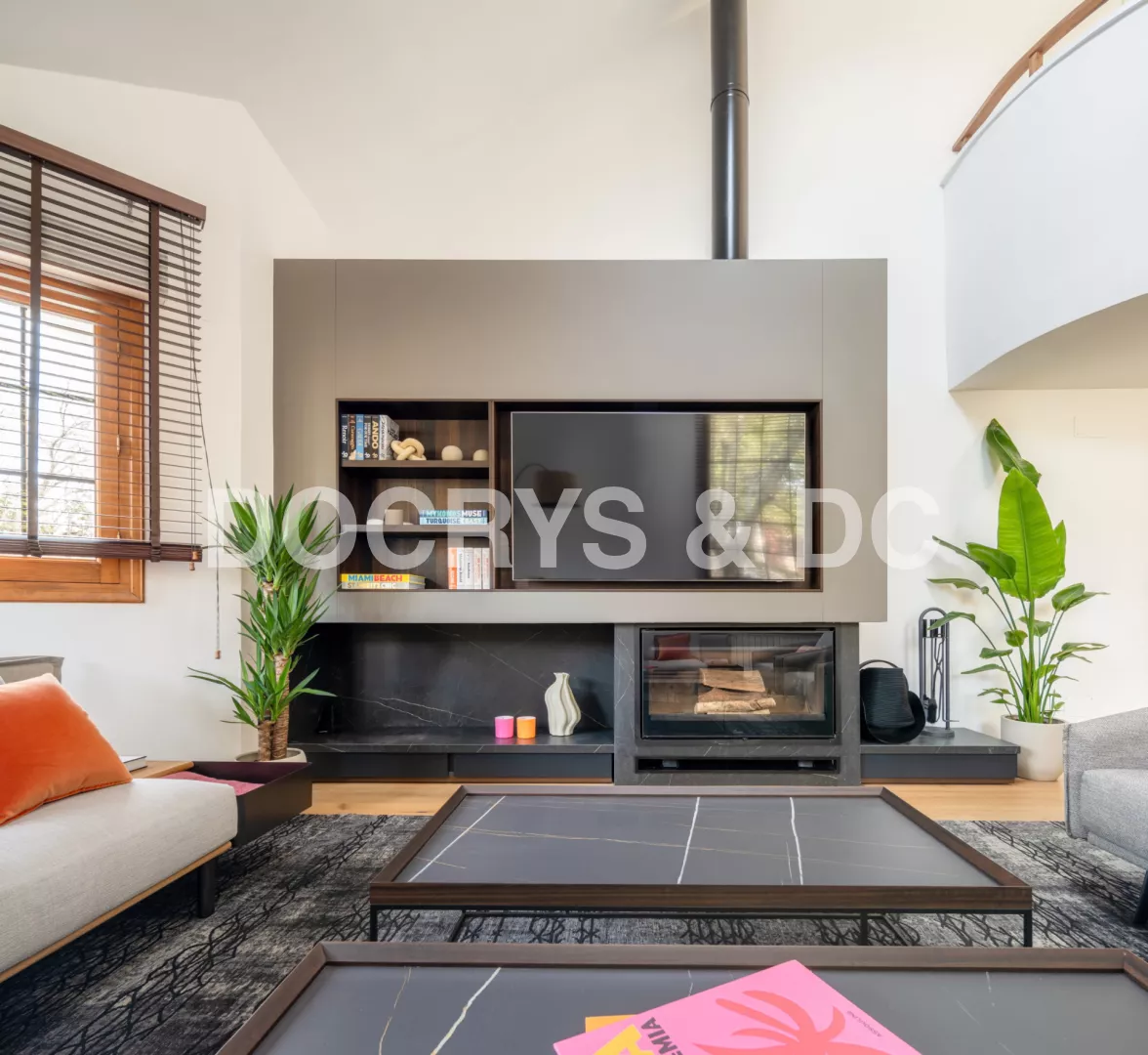 Este proyecto da forma a un salón amplio y luminoso, donde el diseño contemporáneo se combina con elementos arquitectónicos singulares para crear un espacio acogedor, elegante y lleno de personalidad. La doble altura y la entrada de luz natural a través de grandes ventanales y lucernarios potencian la sensación de amplitud, convirtiendo el salón en el verdadero corazón de la vivienda.