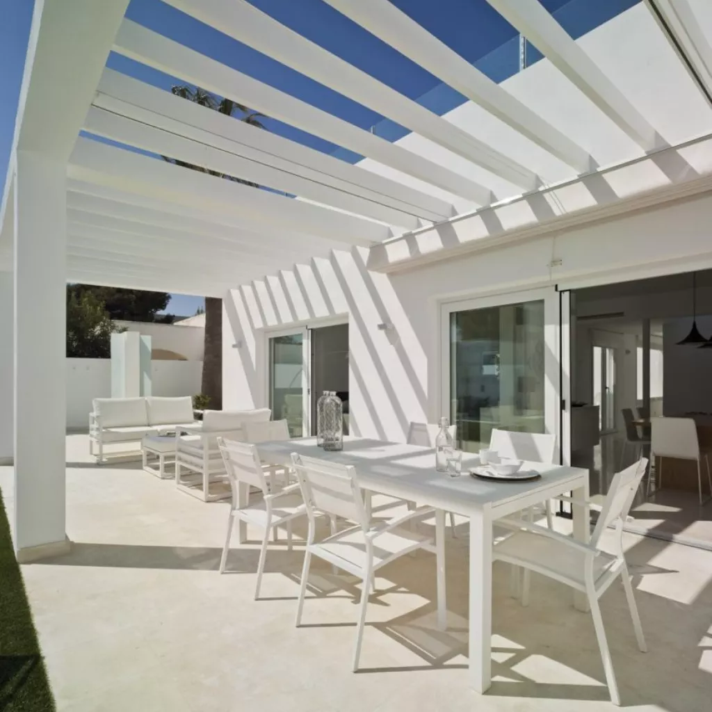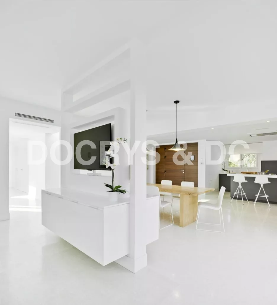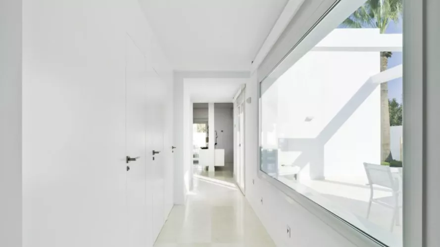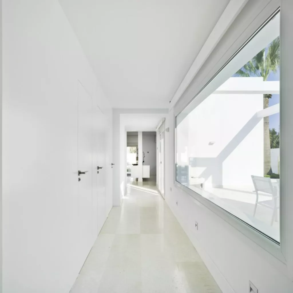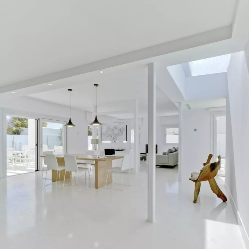 Otorgamos a toda la casa una gran sensación de apertura y libertad fusionando comedor, cocina y salón con las distintas áreas de paso: