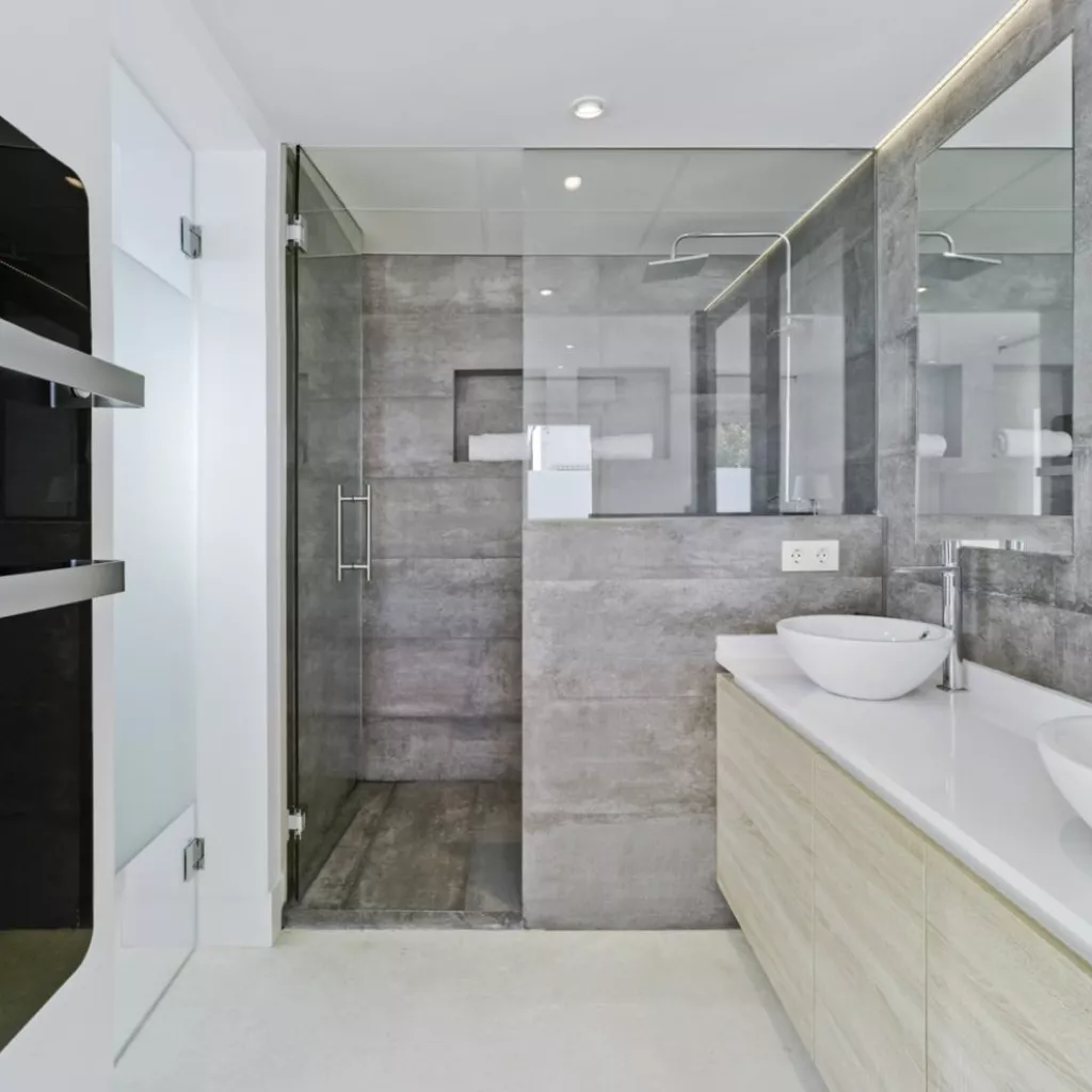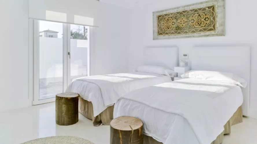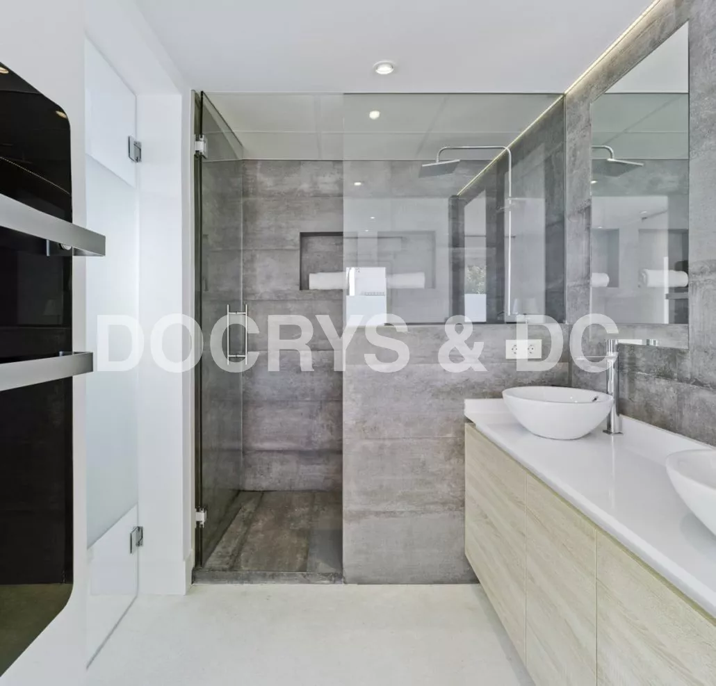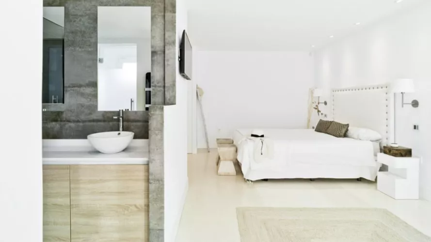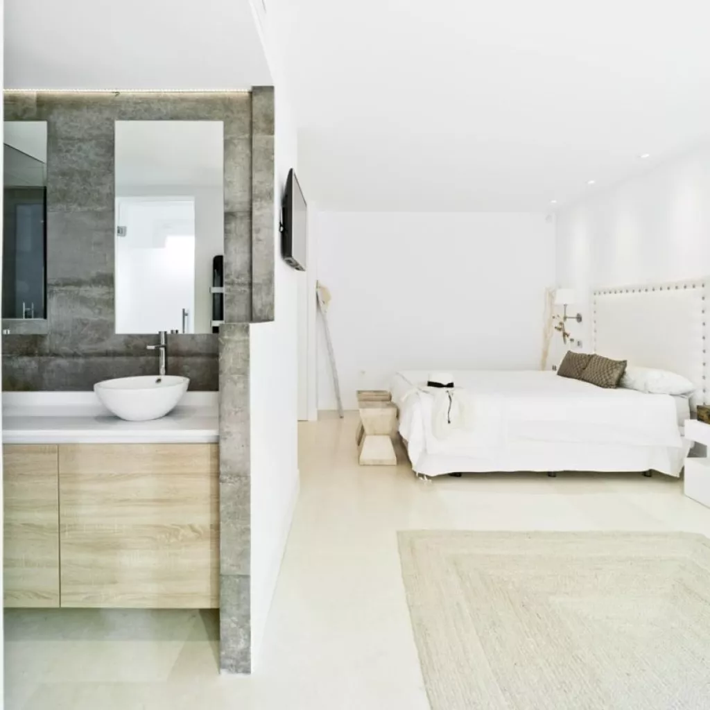 Repartidos a ambos lados de un corredor, los dormitorios destacan por la gran cantidad de luz natural que reciben, debido que todos ellos cuentan con ventanas y puertas acristaladas. Combinamos el baño con la suite principal, creando una unión diáfana y armónica de ambos espacios.