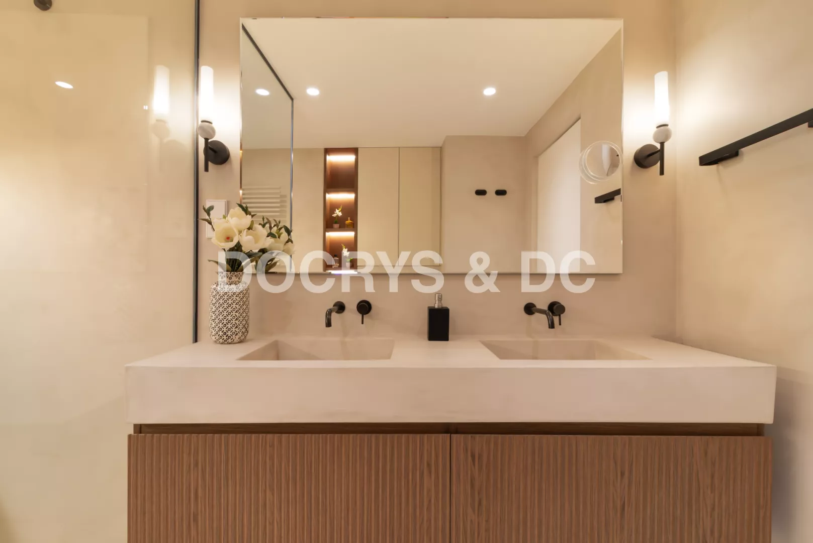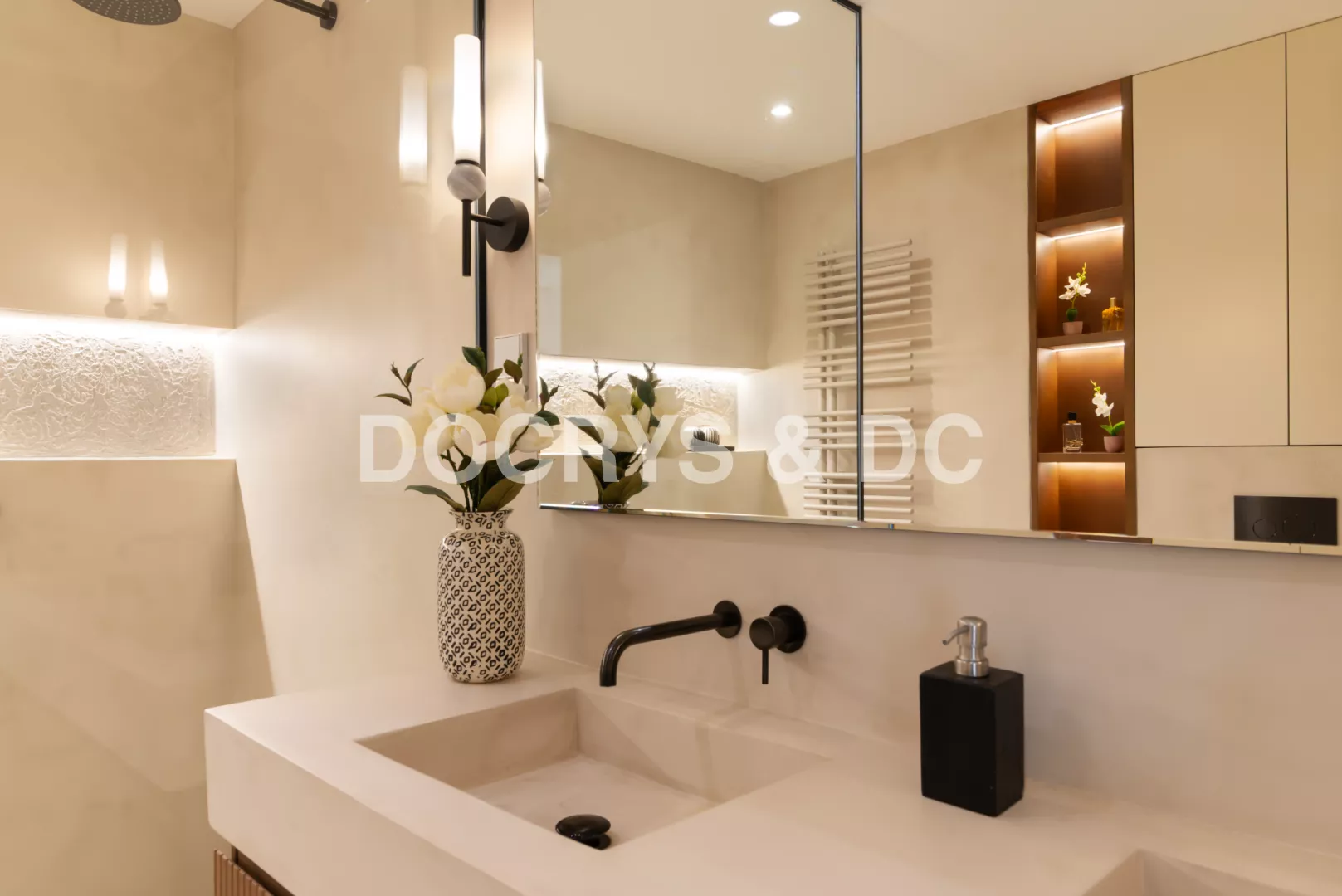 Este baño es un claro ejemplo de cómo el microcemento puede transformar un espacio funcional en un ambiente sofisticado, cálido y atemporal. Su uso continuo en suelos y paredes crea una sensación de amplitud y armonía visual, eliminando juntas y cortes innecesarios y reforzando una estética limpia y serena.